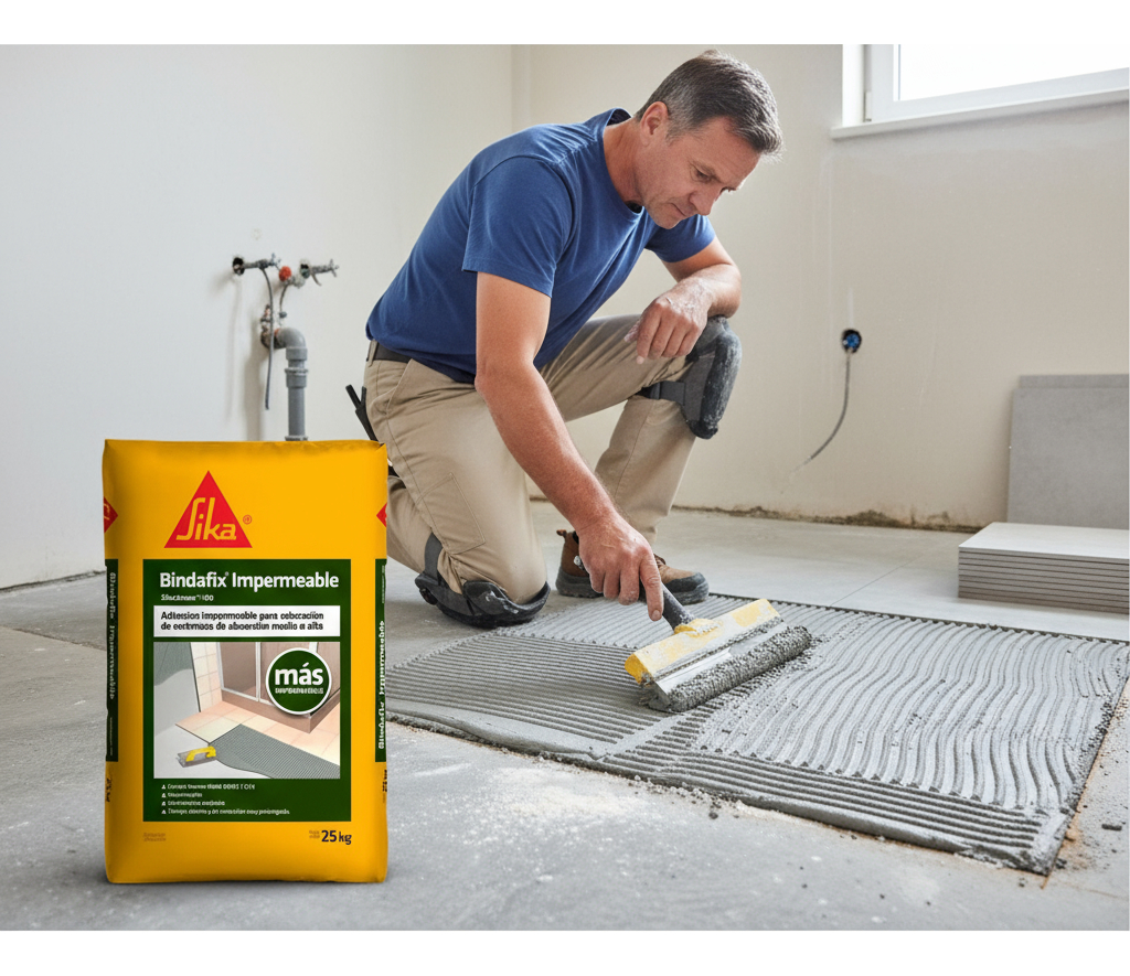 En superficies horizontales, es posible obtener una consistencia más fluida, 2,5 de Bindafix® Impermeable con 1 parte de agua.