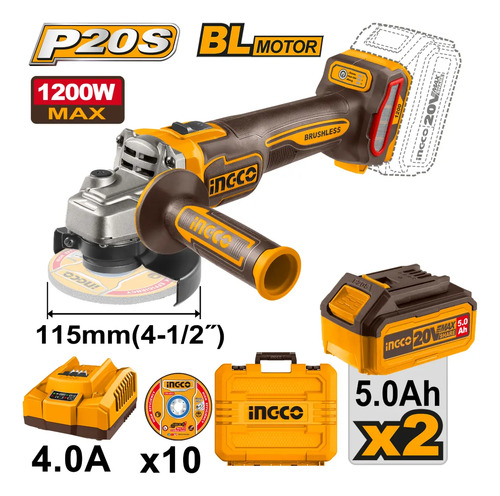 Amoladora 4 1/2 1200w Bat Y Carg Valija Ingco Cagli2211532