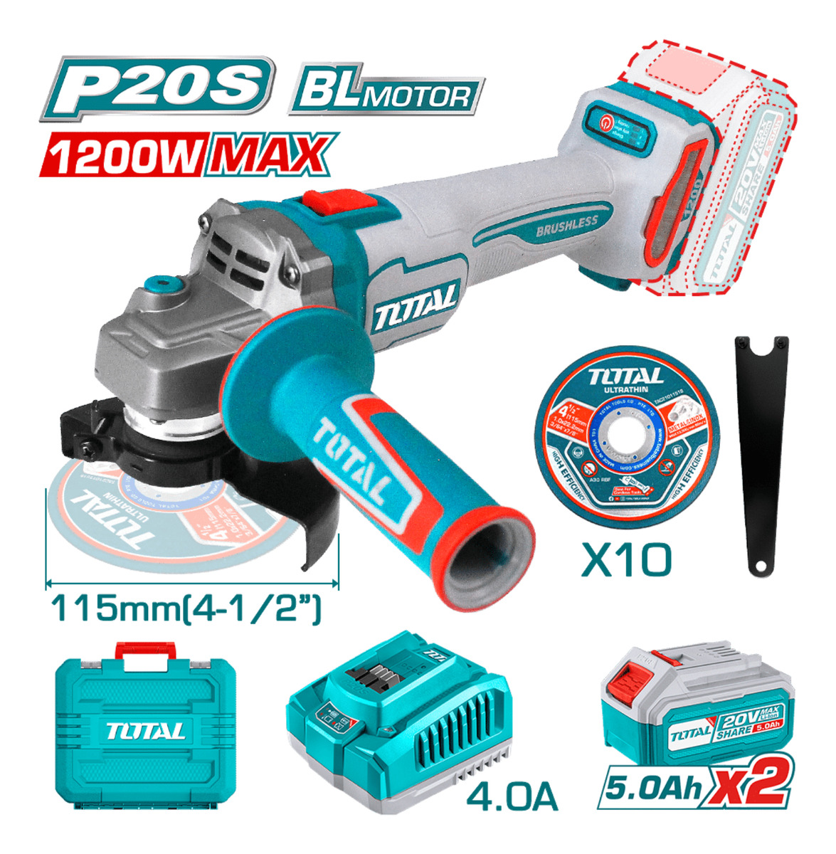 Amoladora Angular Inalámbrica Total 20v