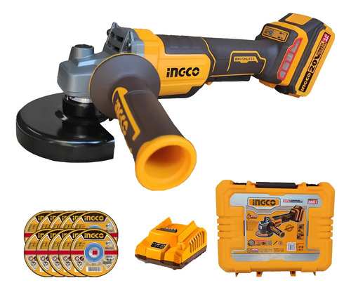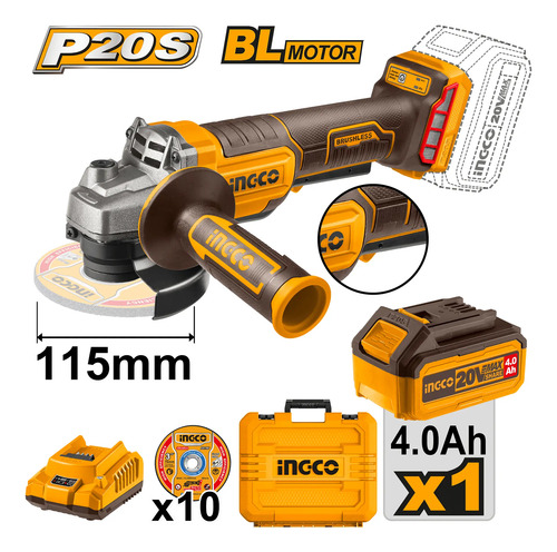 AMOLADORA A BATERIA 20V P20S 4 1/2″ BRUSHLESS CON INTERRUPTOR DE SEGURIDAD C/1 BAT + ACCESORIOS EN VALIJA