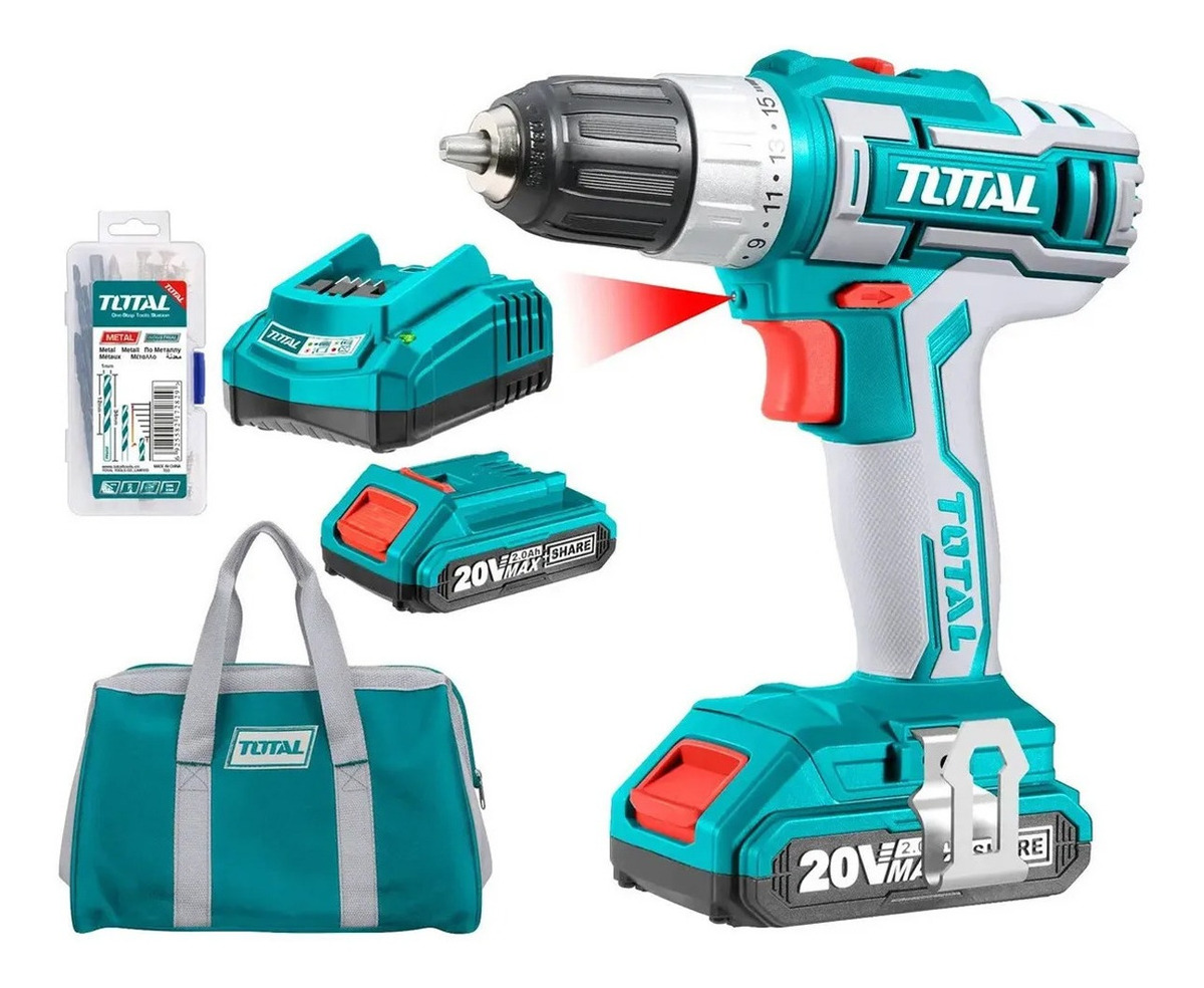 Una batería, múltiples herramientas. Toda la línea de herramientas Total de 20V es compatible entre sí, pudiendo utilizar la misma batería para múltiples herramientas. Como por ejemplo, atornilladores, sierras caladoras, sierras circulares, taladros percutores, infladores, sopladores, amoladoras, caladoras, llaves de impacto, aplicadores de silicona, focos, linternas, equipos de pintura, etc.