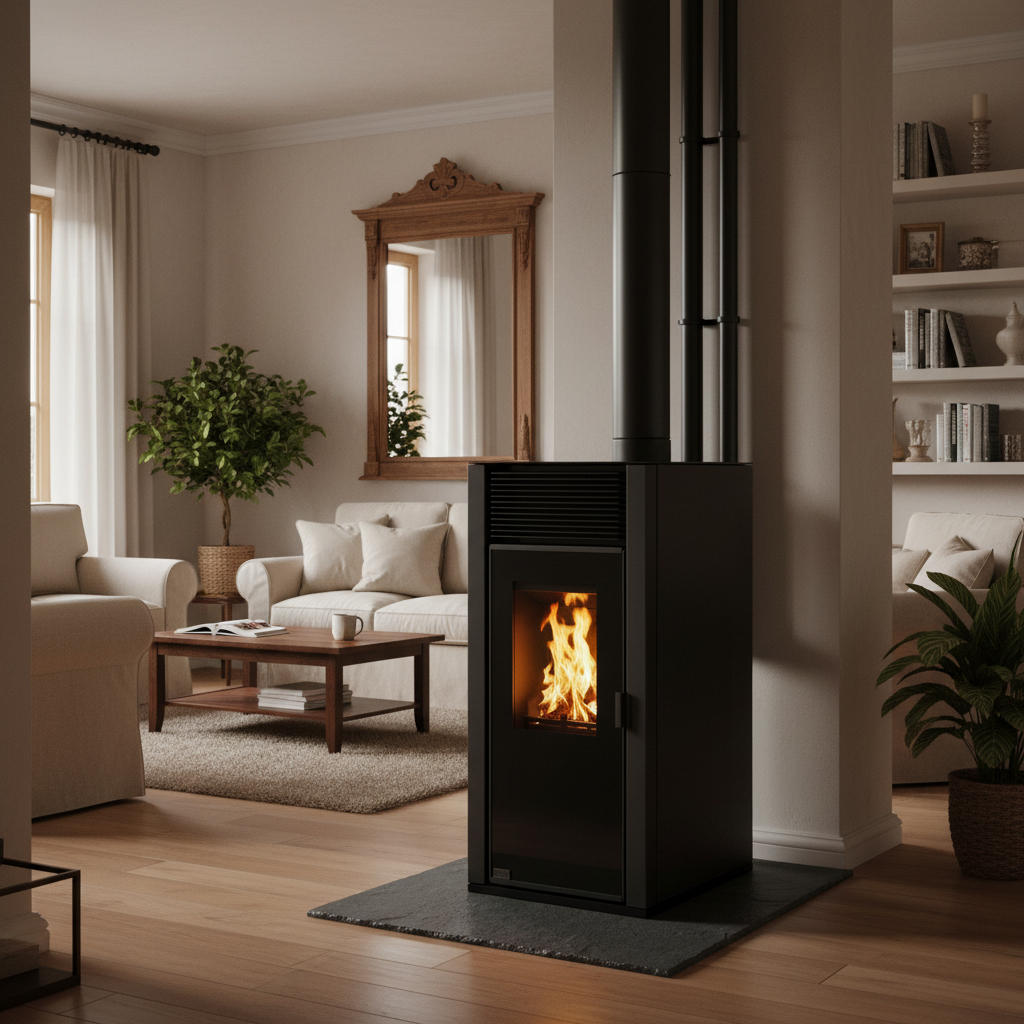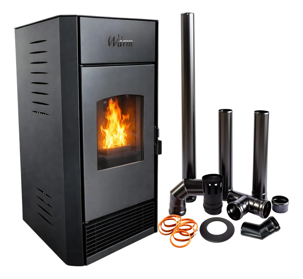 Calefactor estufa a pellet Warm 13KW 130m2 – SRPCA + KIT DE CAÑOS DE REGALO