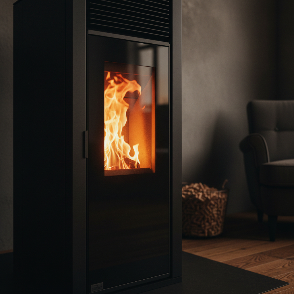 6. LCD panel de control: se coloca en el lado superior de la estufa, simple y fácil de utilizar. Es posible planificar el cambio semanal de encendido y apagado de la estufa (fin de semana incluido).
