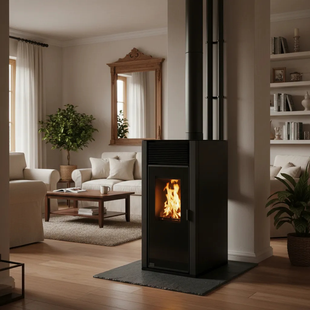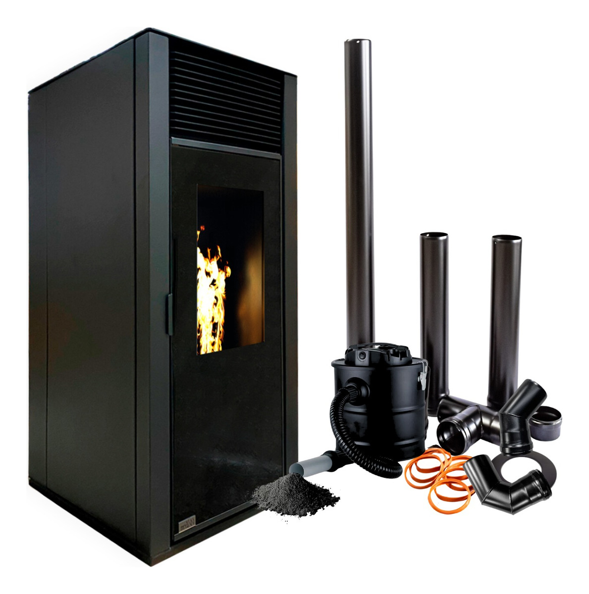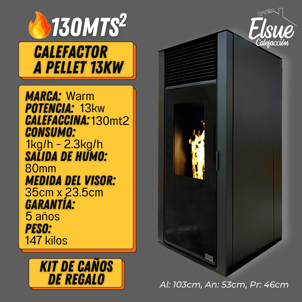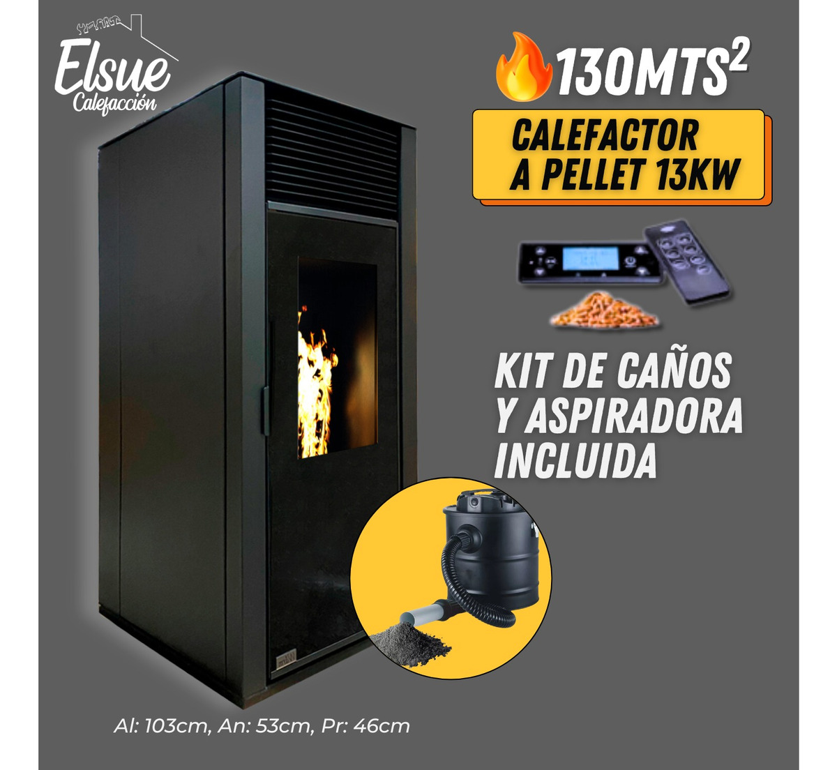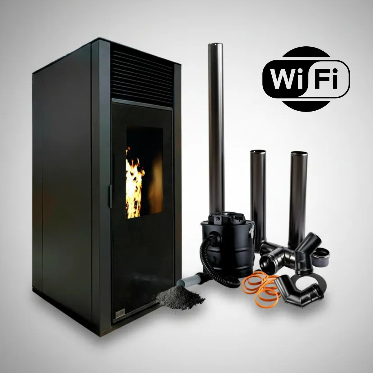 Estufa a pellet SRPCA 13w 130m2 + Kit de Caños, Aspiradora Warm y Modulo Wifi Incluidos