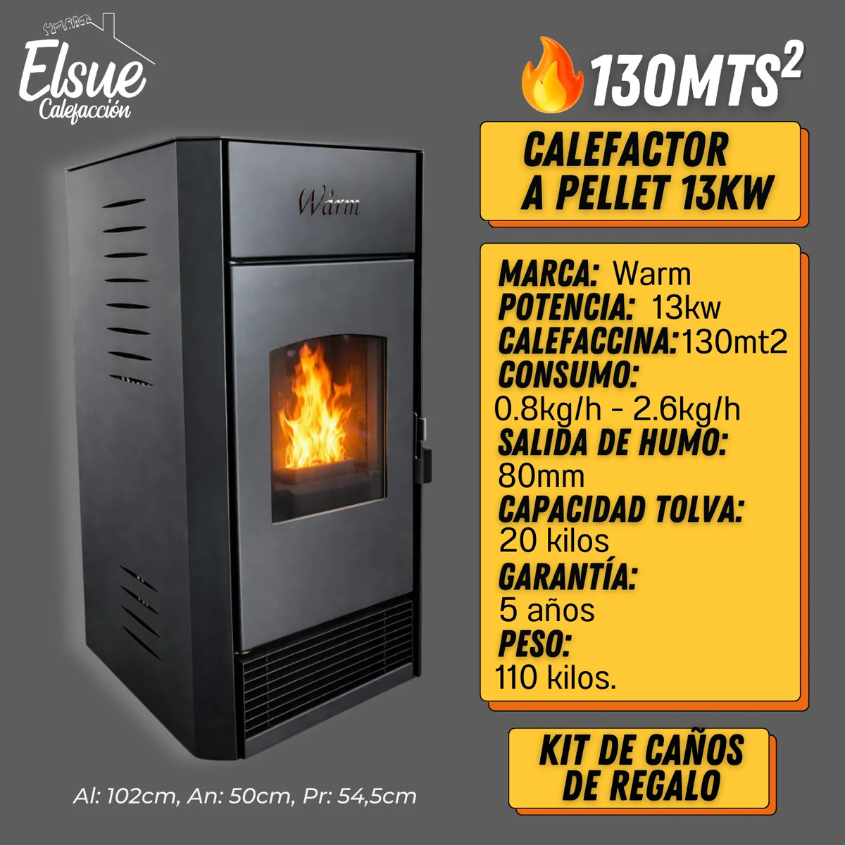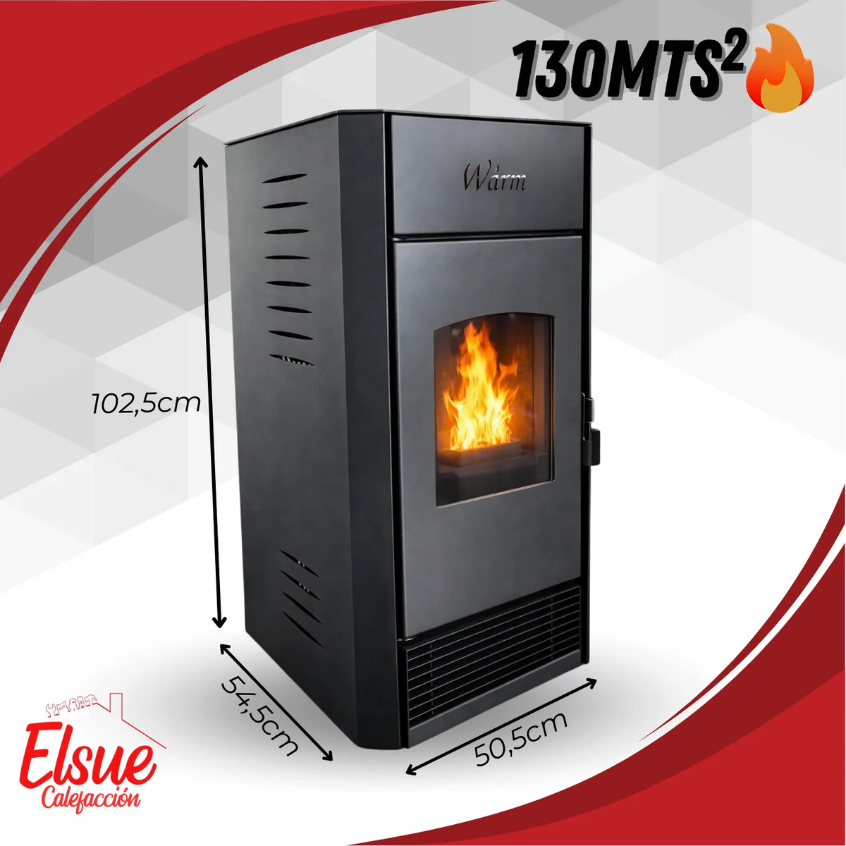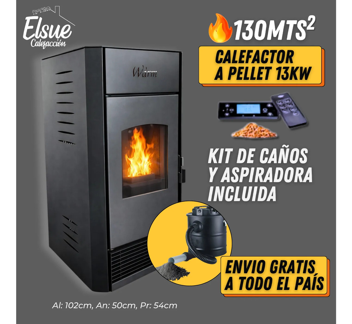 Estufa a pellet 13w 130m2 + Kit de Caños, Aspiradora Warm y Modulo Wifi Incluidos