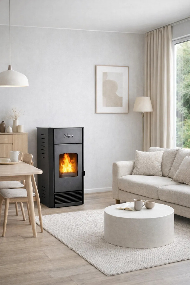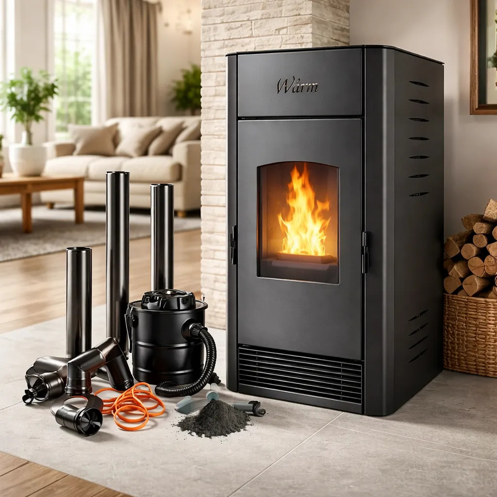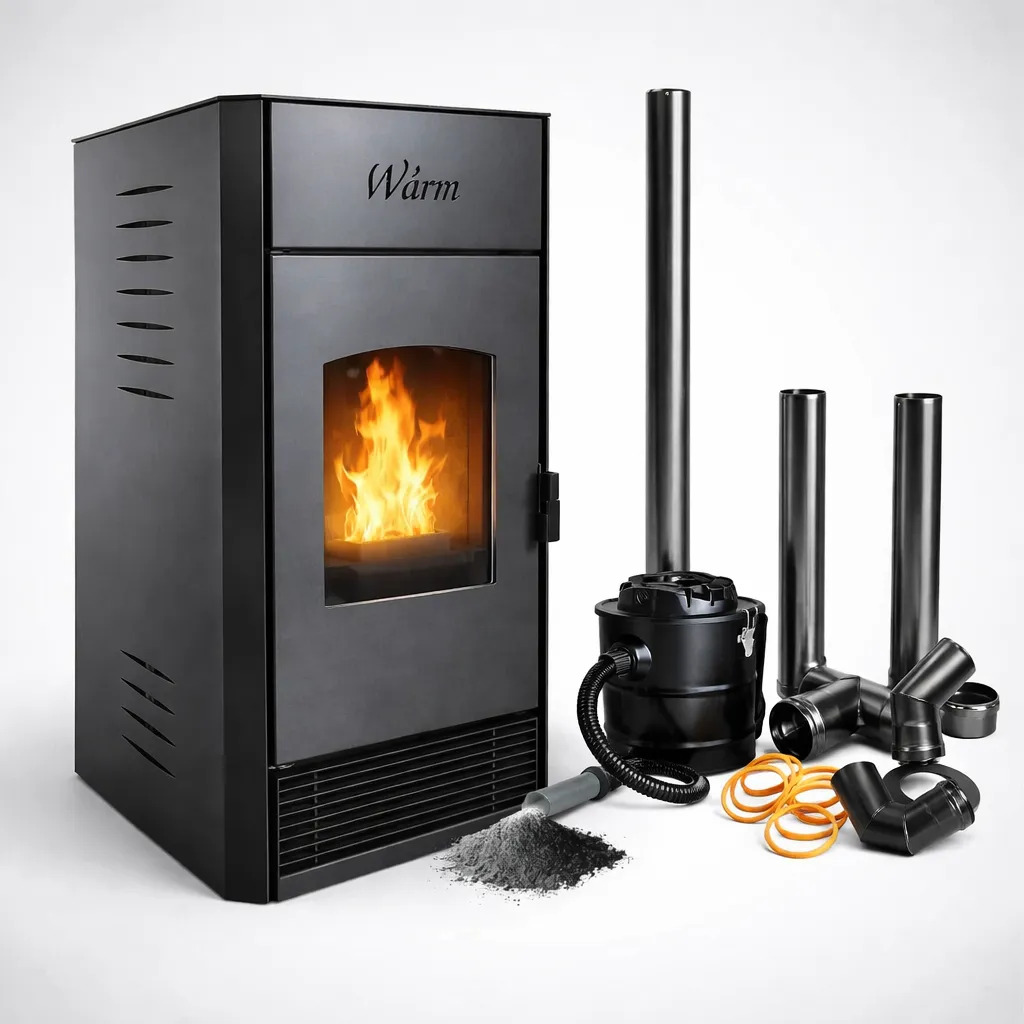 Estufa a pellet 13w 130m2 + Kit de Caños, Aspiradora Warm y Modulo Wifi Incluidos