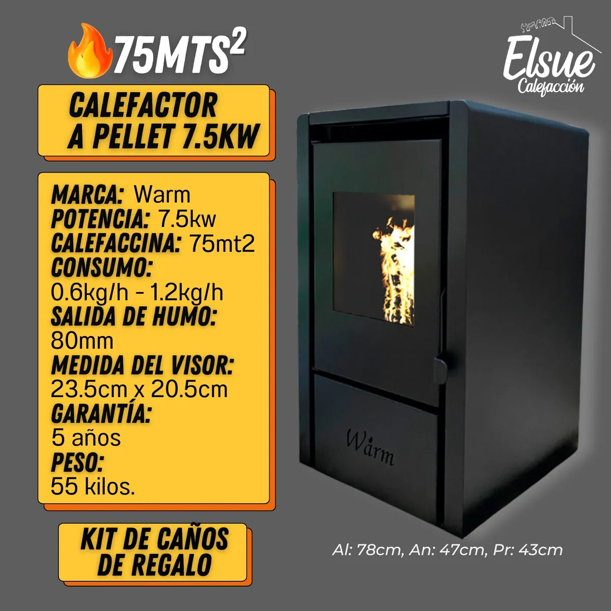 ATENCIÓN *MODELO NUEVO* Calefactor Estufa a Pellet Warm 7,5kw 75m2