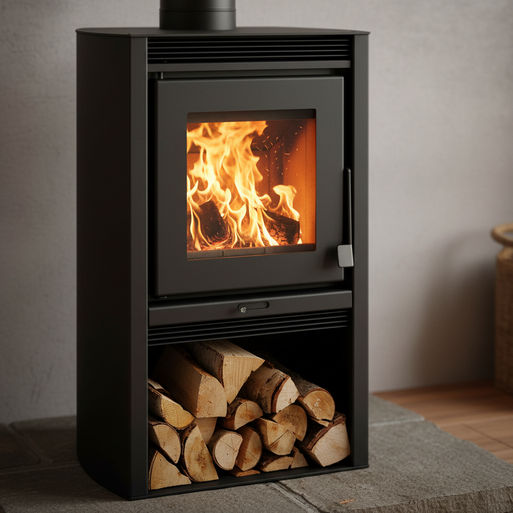 Calefactor a leña ecológico doble combustión + Kit instalación en acero inoxidable + 2 Codos a 45º