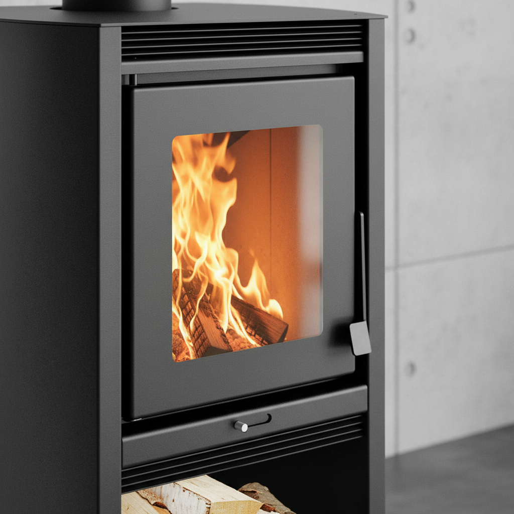 Calefactor a leña ecológico doble combustión + Kit instalación en acero inoxidable.