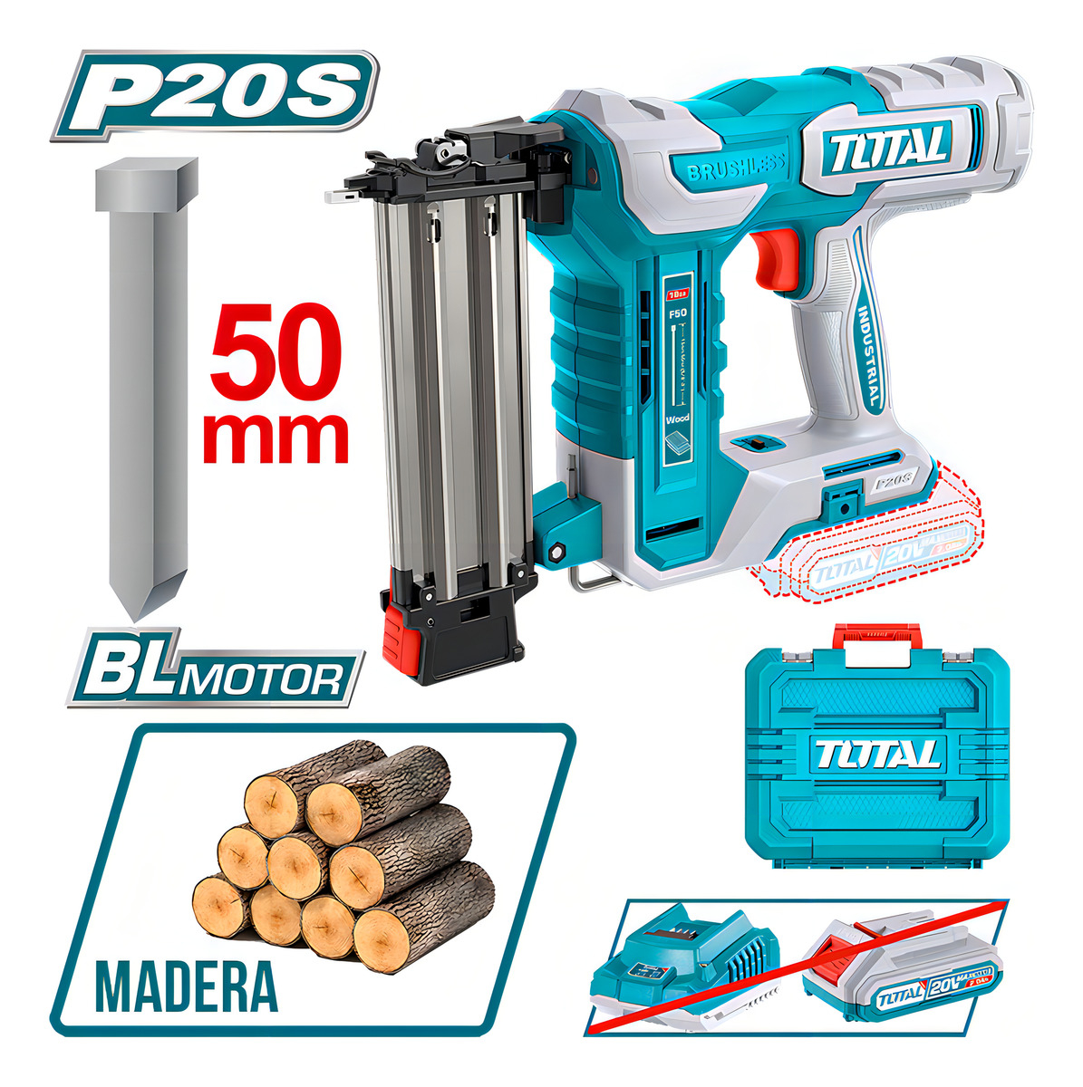 Clavadora Inalámbrica Para Madera Total 20v