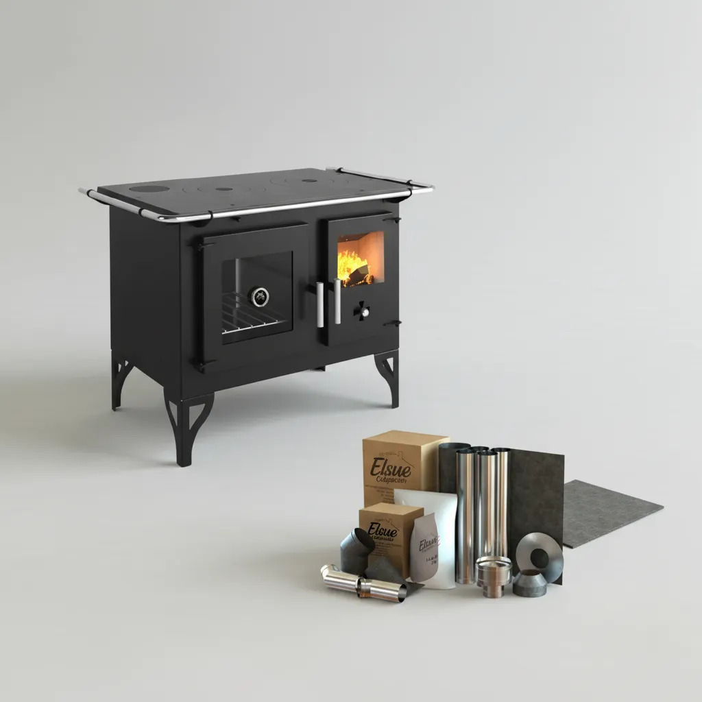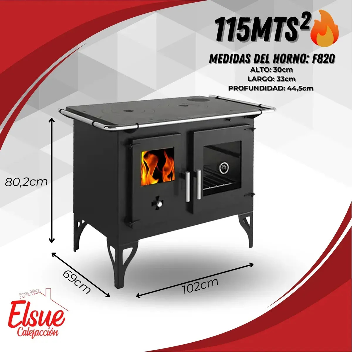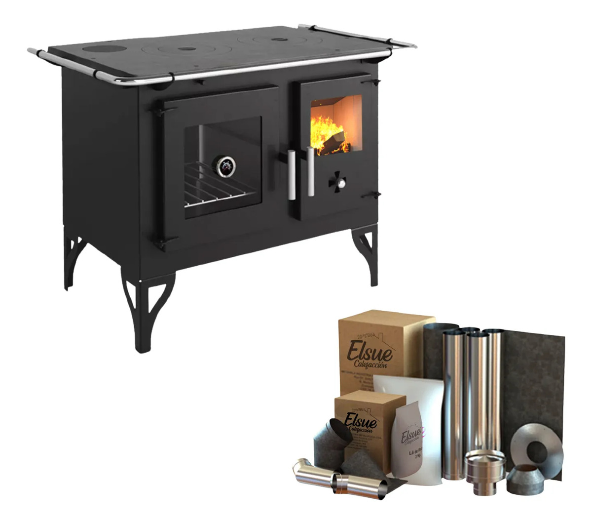Cocina Estufa Calefactor Leña Metávila F820 115m C/kit Pared
