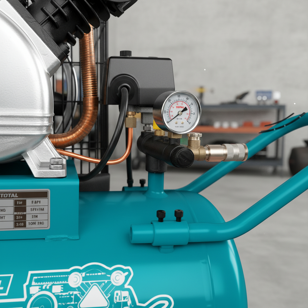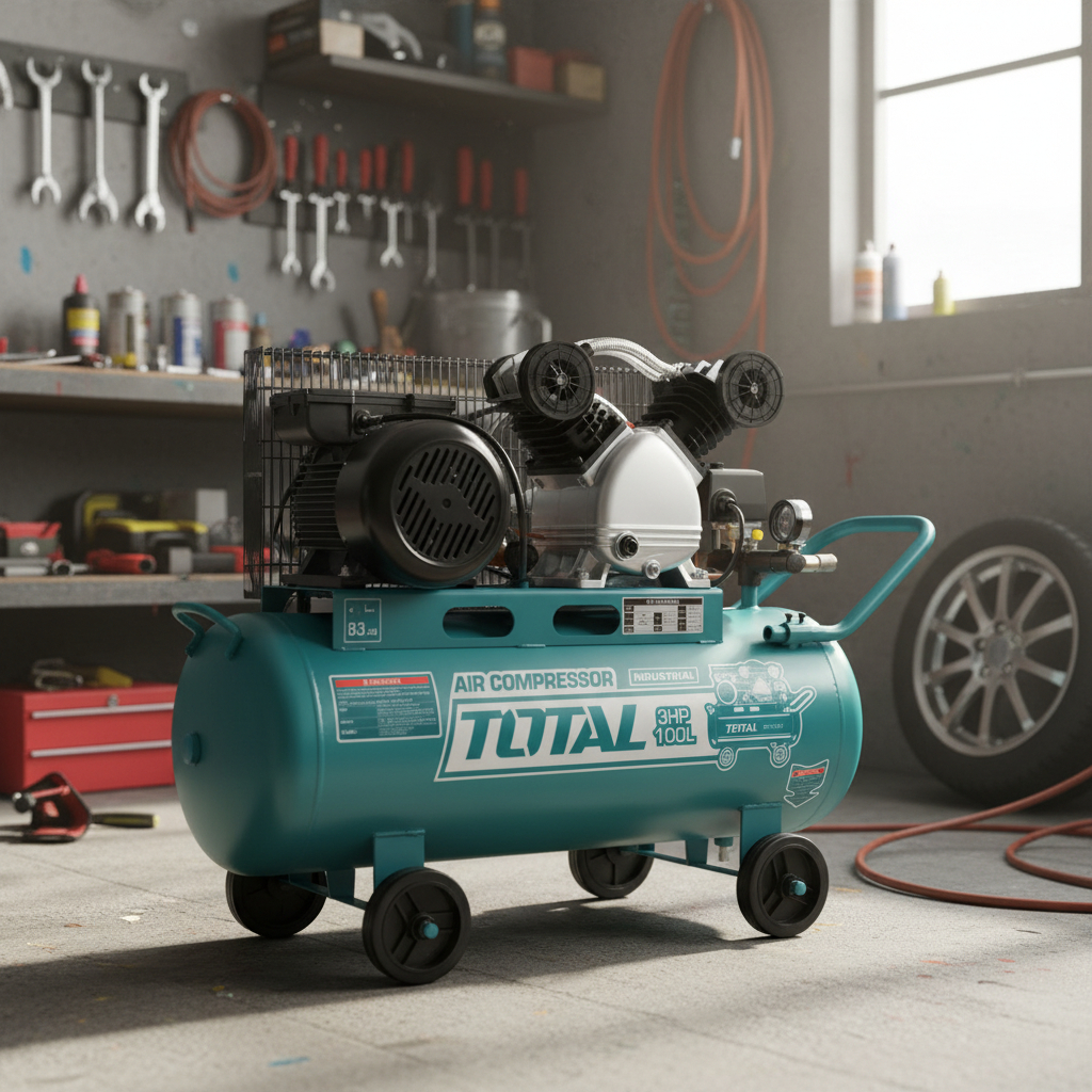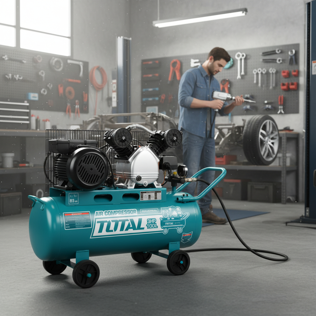Compresor de aire Total, motor de 3HP con tanque de 100L.