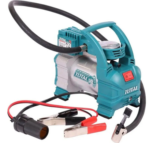 Compresor para auto 12V TOTAL TOOLS, flujo de aire de 35L/min. Recomendado para inflar neumáticos, pelotas, colchones, entre otros.