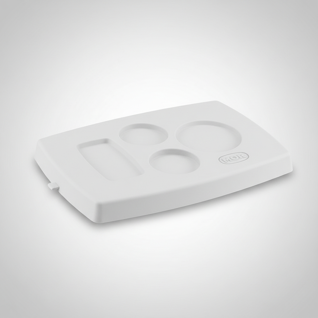 * Tapa separada con 4 divisiones para apoyar vasos u otros objetos.