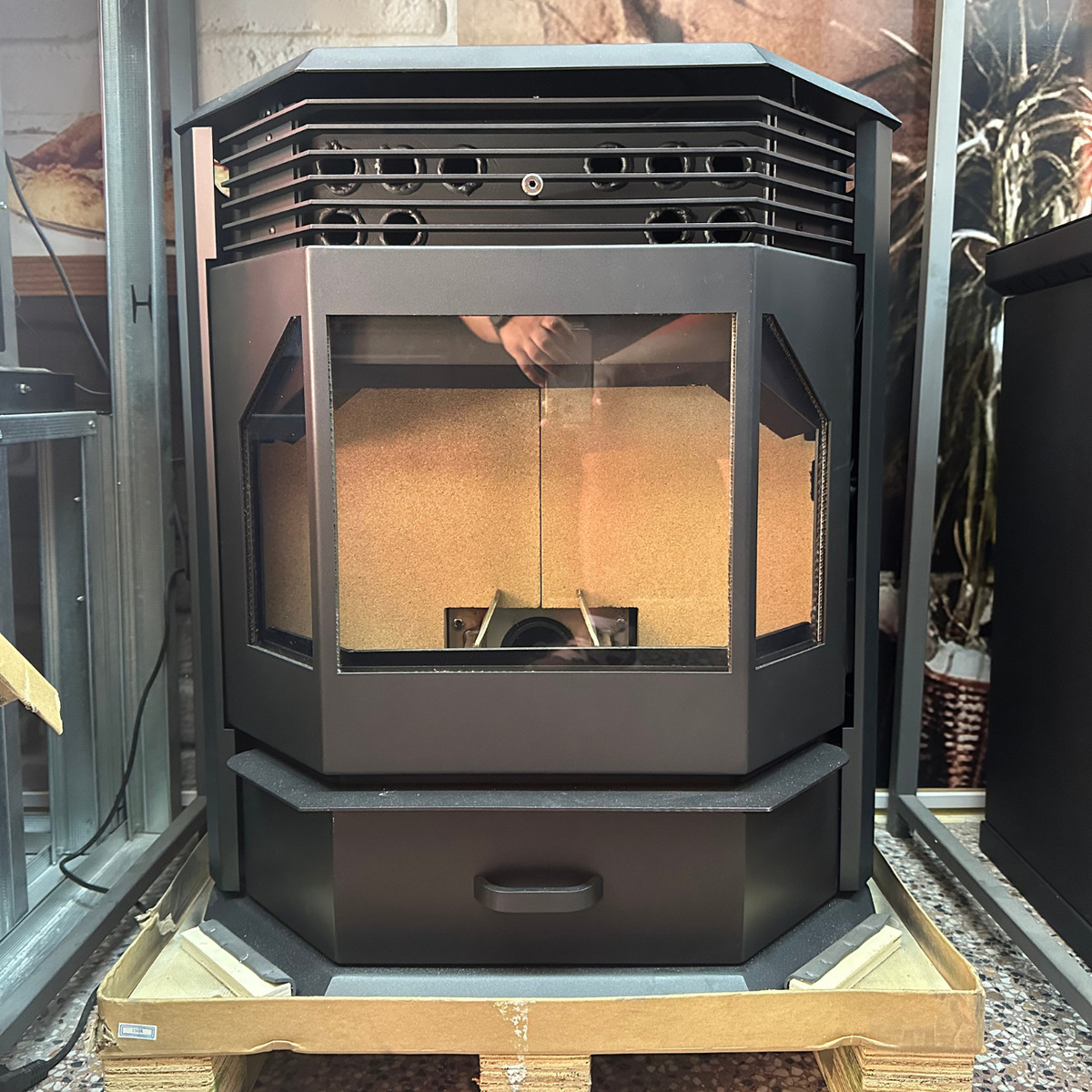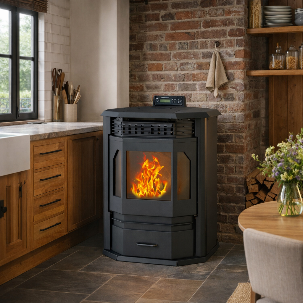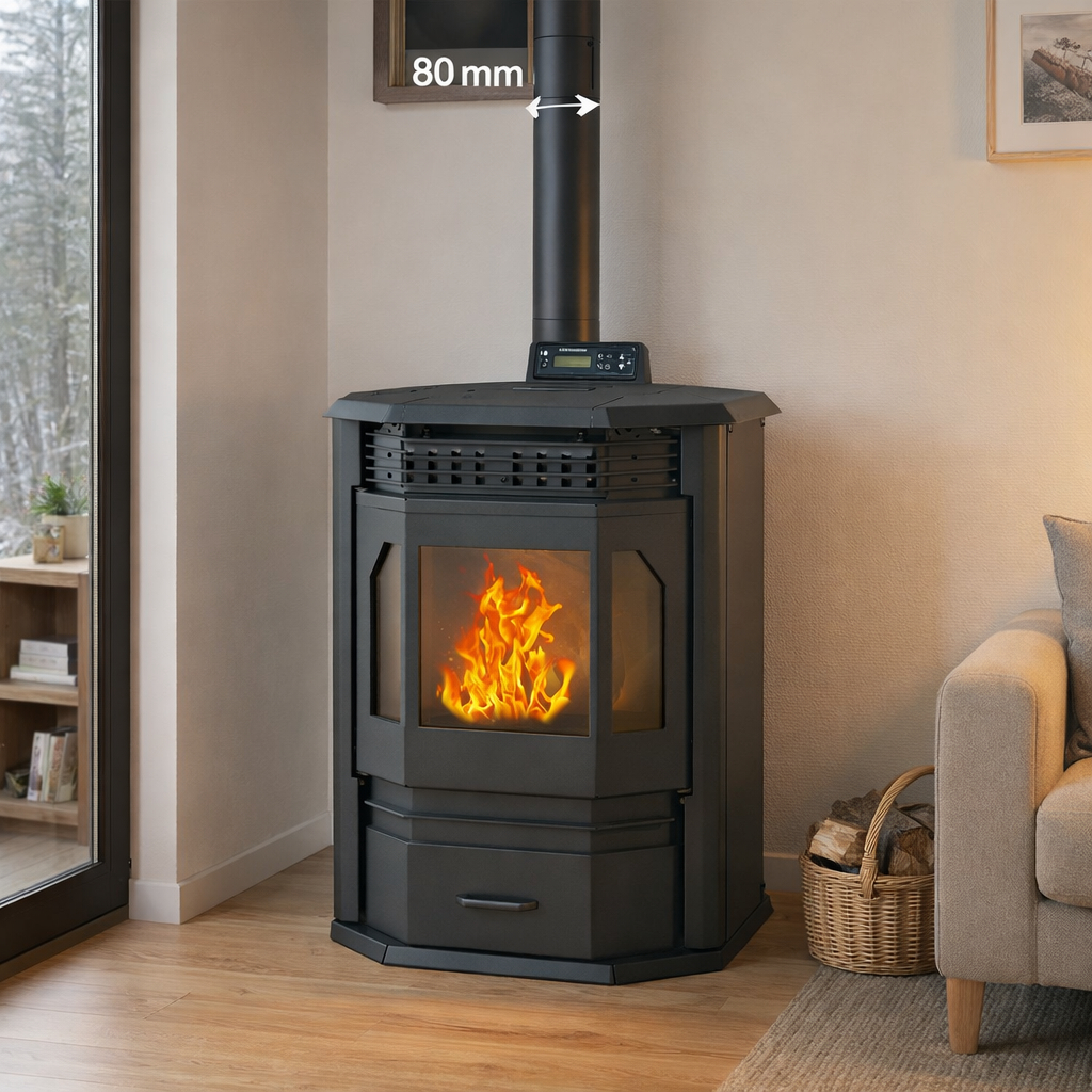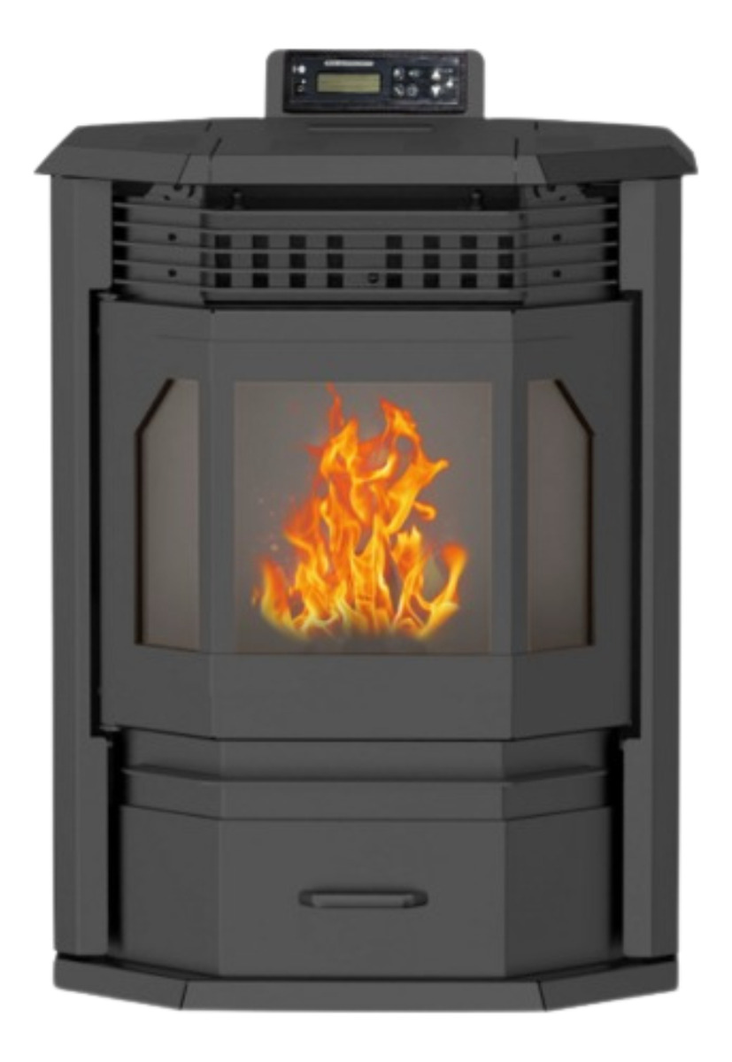 Calefactor a pellet de 13 kW, ideal para climatizar ambientes de hasta 130m2, combinando alto rendimiento, bajo consumo y diseño moderno. Una excelente alternativa ecológica y eficiente para el hogar.