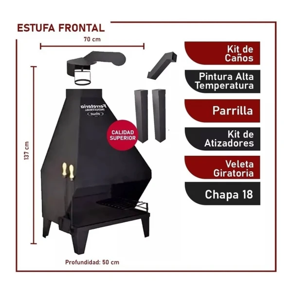 Estufa Frontal Leña Chapa 18 70x137cm Kit De Caños Incluido