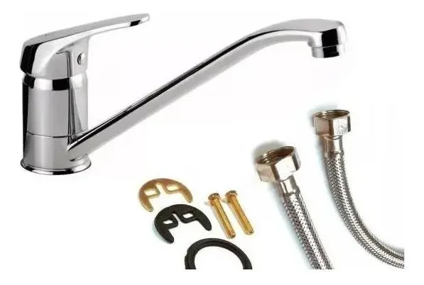 Griferia Canilla Pico Largo Monocomando Mesada Metal Cocina