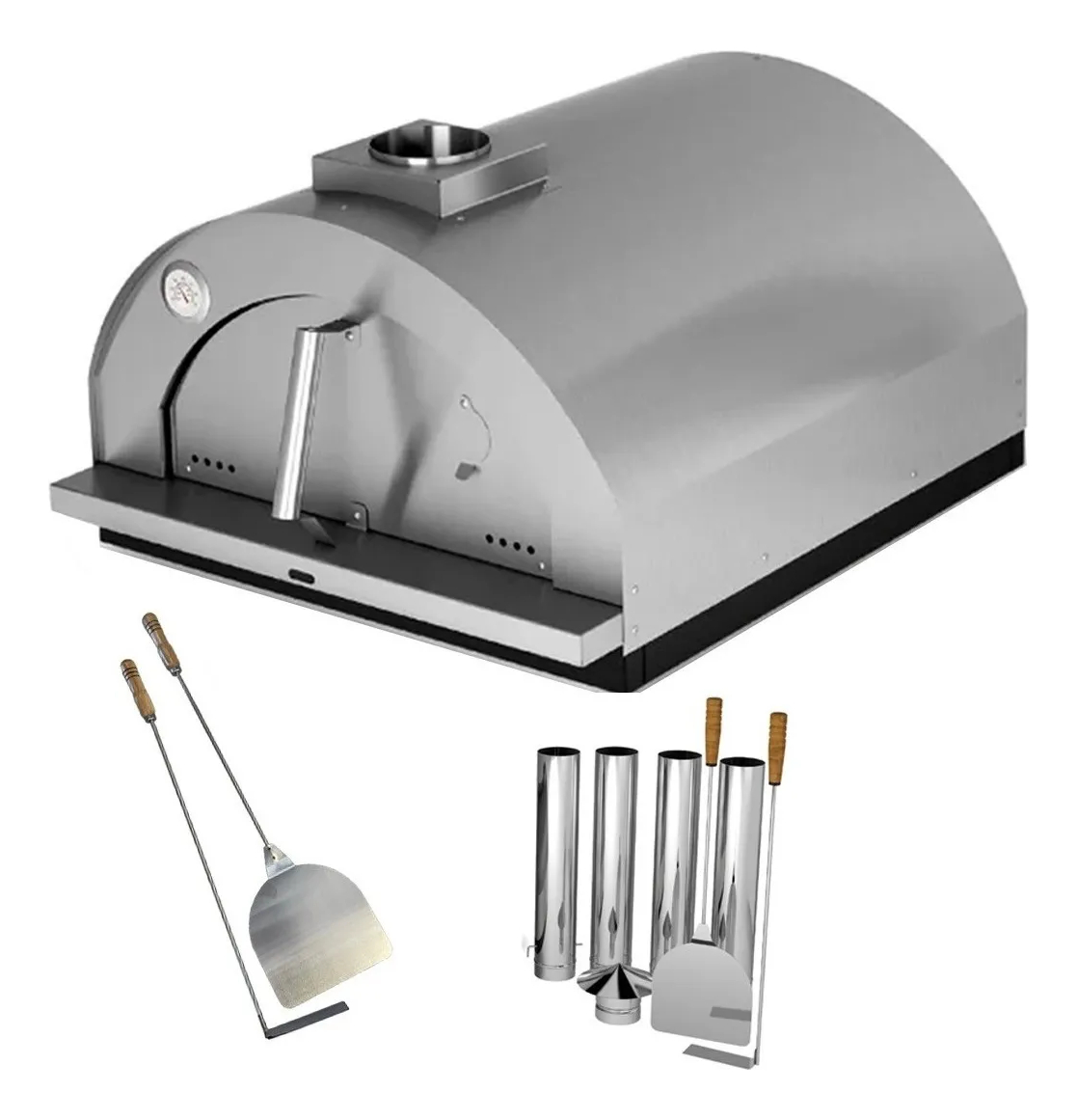 El Horno para Pizza Mediano Firenze Firenze de Metávila tiene un diseño italiano, formato iglú para uso interior, debe instalarse fijo sobre una encimera resistente a la temperatura. Fabricado en acero inoxidable cepillado, es el producto que faltaba para integrar tu zona Gourmet y hacer feliz a la familia. Haz pizzas, carnes, panes y pasteles con sabor a horno de leña sin salir de casa. El horno de leña para pizza Firenze Firenze en acero inoxidable cepillado 615IN viene con conductos y acabado de revestimiento también en acero inoxidable cepillado.