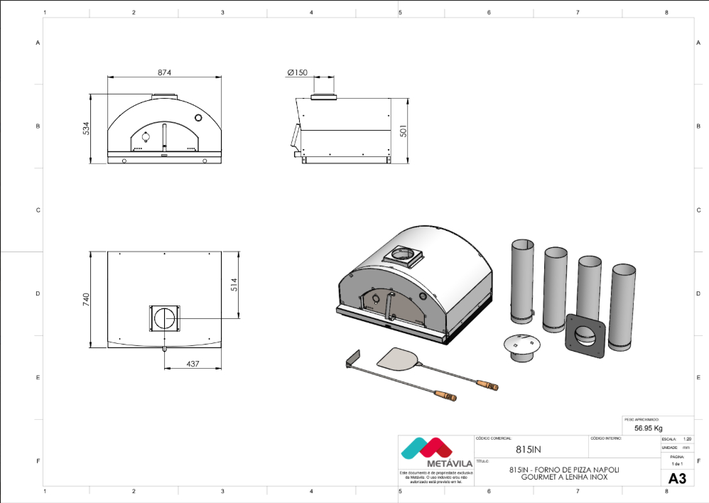 Peso aproximado del Horno de Pizza Mediano Firenze: 44kg.