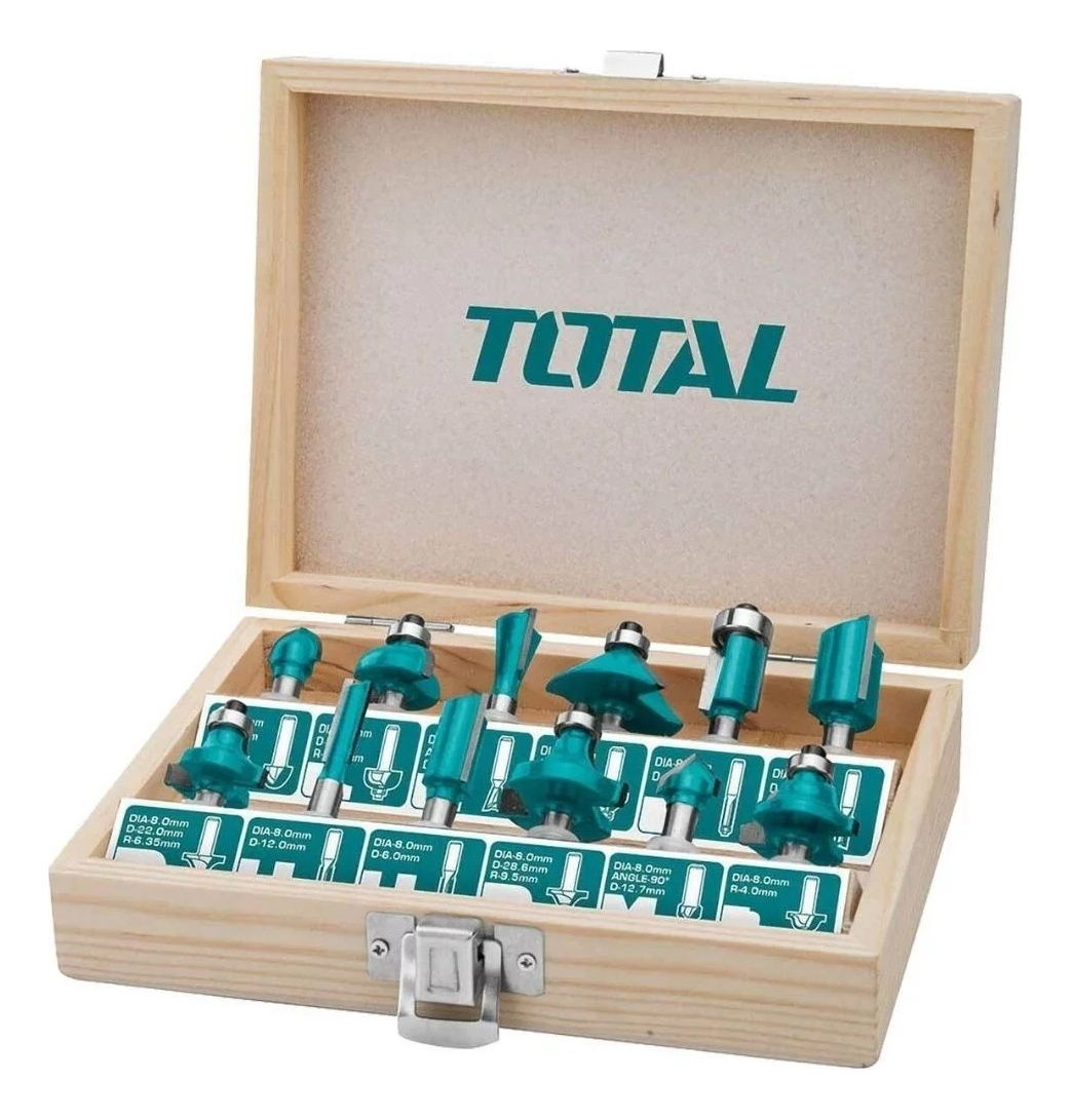 Juego de 12 fresas para router encastre 8mm Total TACSR1121
