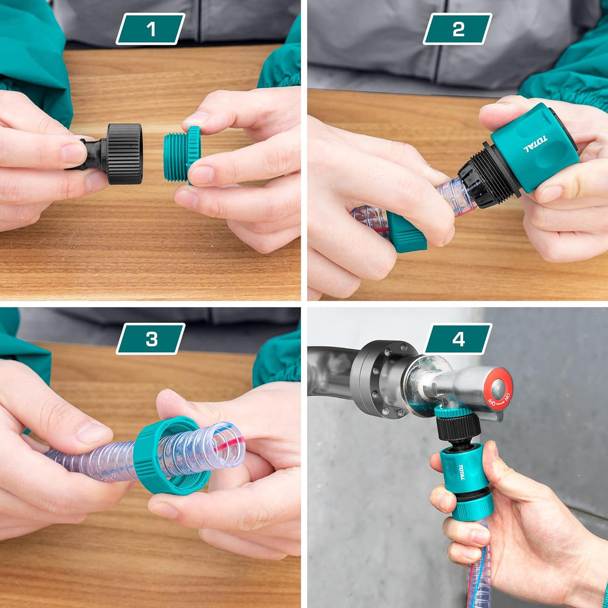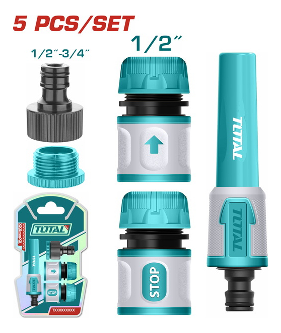 -Con 1 Conector Rápido De Manguera De Plástico De 1/2″ Con Tope De Agua.