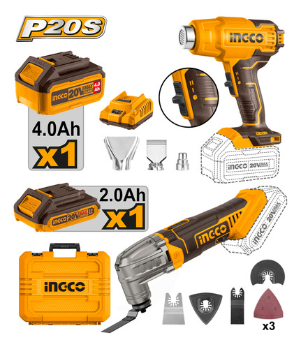 KIT 20V P20S PISTOLA DE CALOR + HERRAMIETA MULTIFUCION C/CARG C/BAT