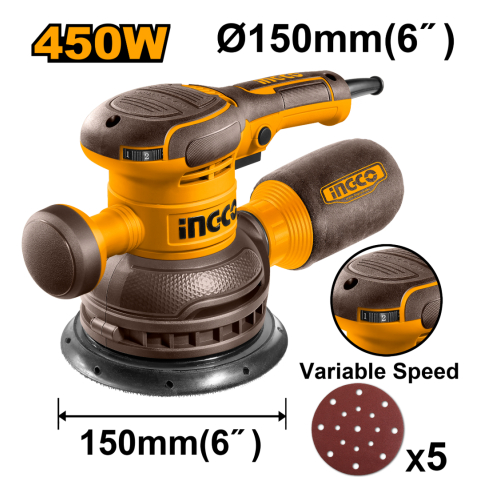 Lijadora Roto Orbital 150mm 450w C/ 5 Lijas De Regalo Ingco