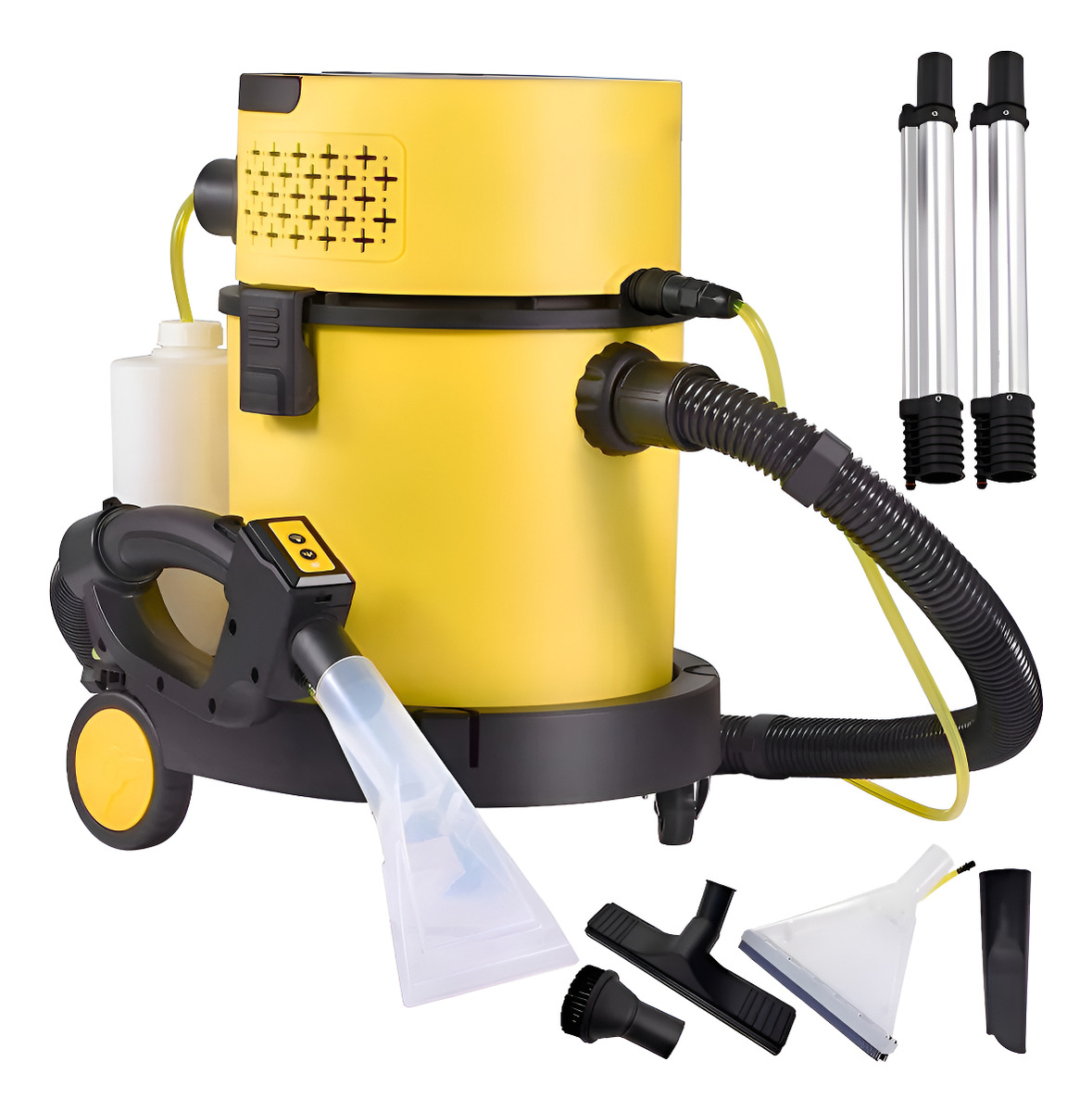 – Compacto y portátil: Nuestra aspiradora en seco y húmedo tiene cinco cepillos intercambiables en los accesorios para satisfacer sus diferentes demandas. Además, el cable de alimentación más largo, el mango anular y las ruedas universales hacen que la operación ahorre trabajo.