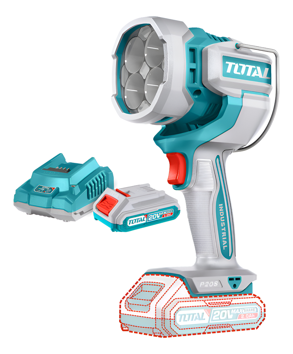 LINTERNA LED TIPO PISTOLA 20V 2000 LUMENS + 1 BATERIA + CARGADOR