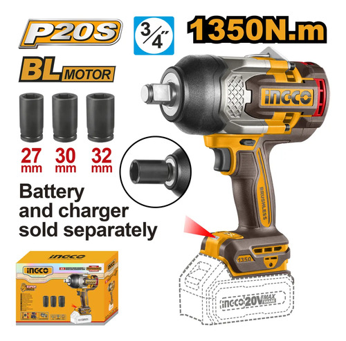 Llave De Impacto 20v 1350nm 3/4 C/dados Ingco Industrial