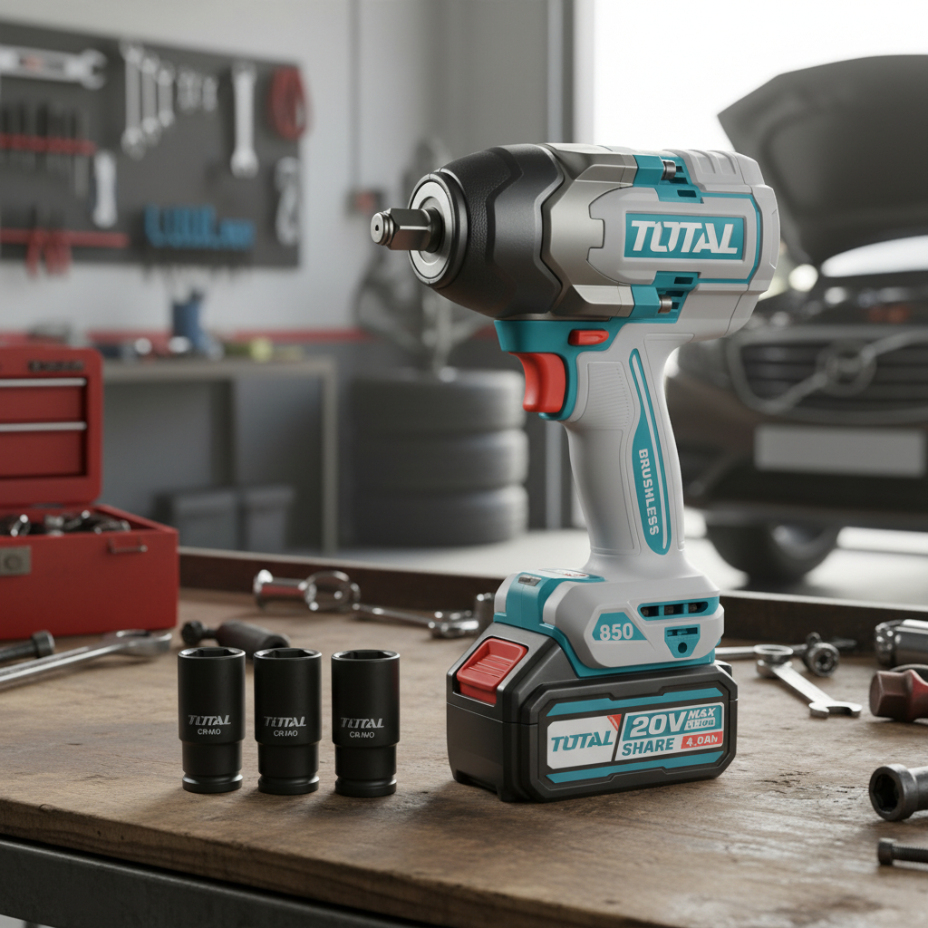 Llave Impacto Total 20v 1/2» 850nm Brushless 1 Bat 4 Y Carg