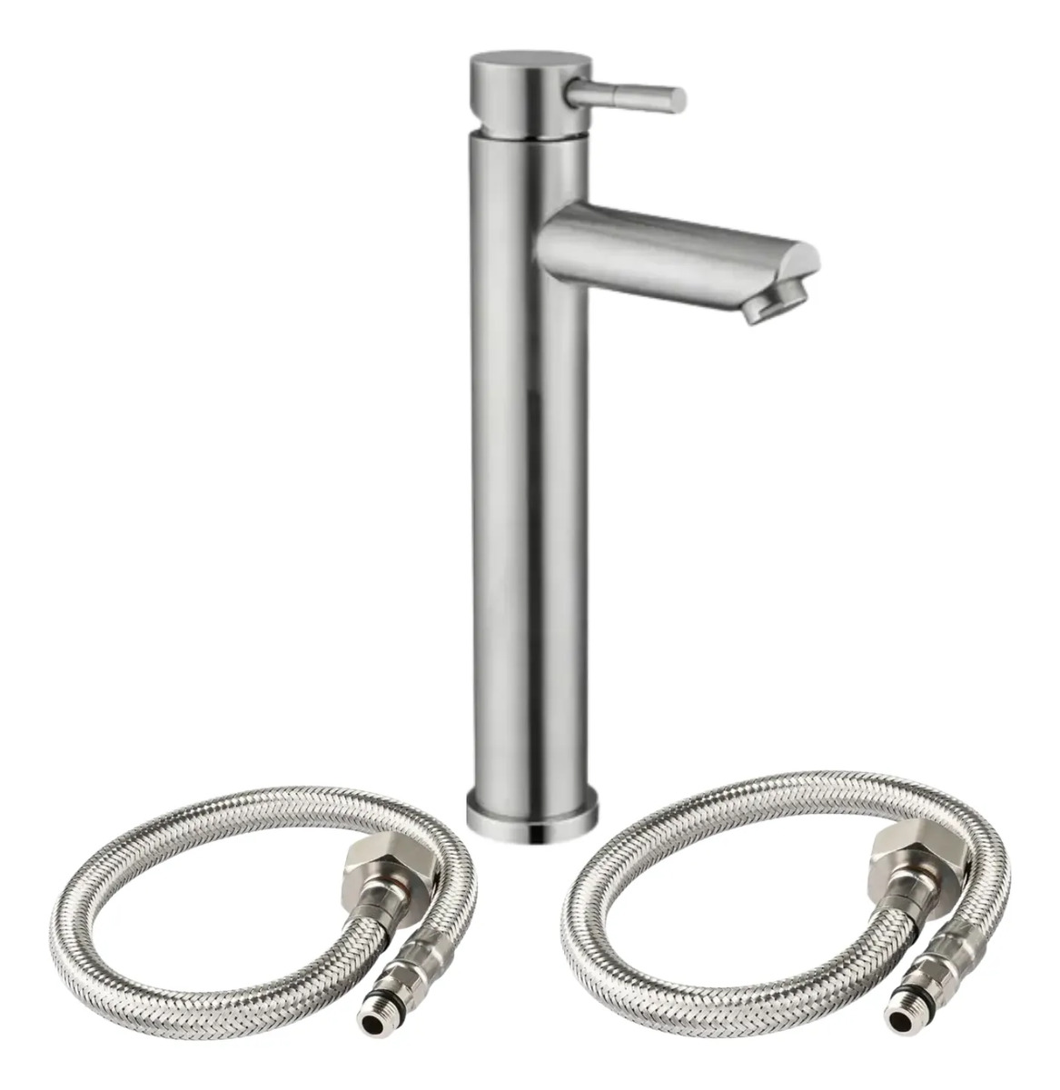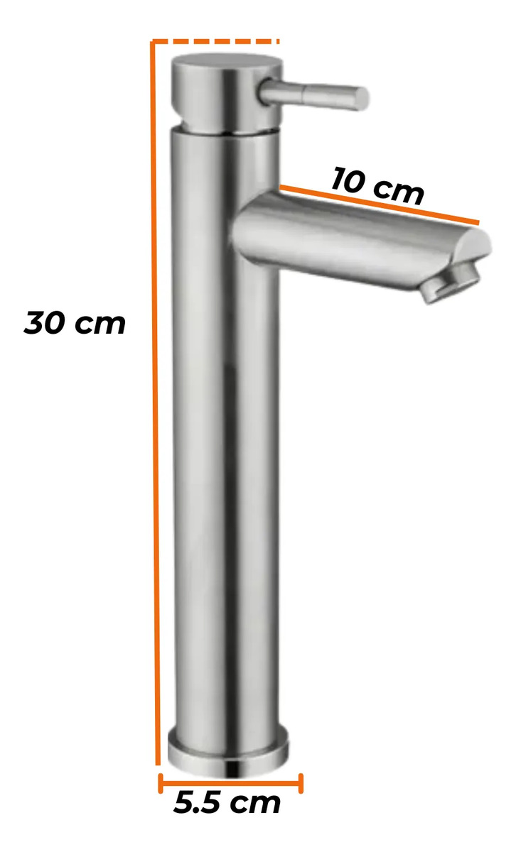 La grifería monocomando para lavatorio de baño en acero inoxidable alto de 30 cm es la elección perfecta para quienes buscan funcionalidad y estilo en su espacio. Su diseño elegante y moderno se adapta a cualquier decoración, aportando un toque contemporáneo a su baño.