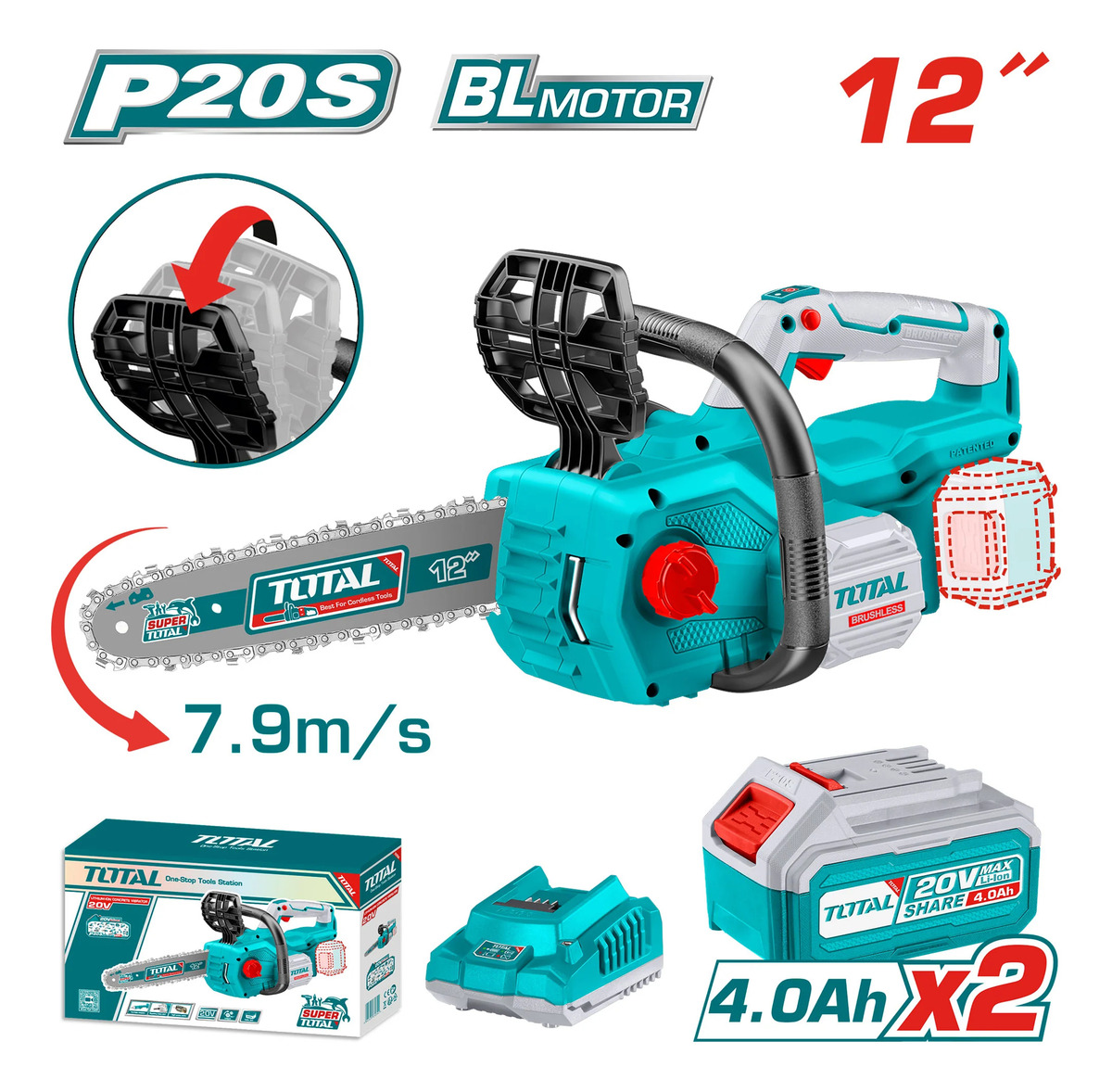 Motosierra Batería 20v Total 12 + 2 Bat 4 Amp + Carg Brushle