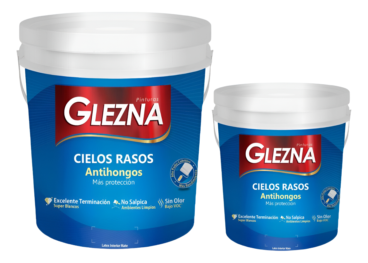 Pintura Cielos Rasos Antihongos, es una pintura mate para interiores, formulada especialmente para la protección de cielos rasos, no salpica y debido a su gran porosidad evita la condensación de la humedad por lo que es especialmente útil para techos, baños y cocinas. Tiene alto poder cubritivo, mas rendimiento, excelente terminación y es una pintura sin olor. Su composición es indicada para la protección de cielos rasos, enduido, ladrillo, yeso, paneles acústicos y hardbcard.