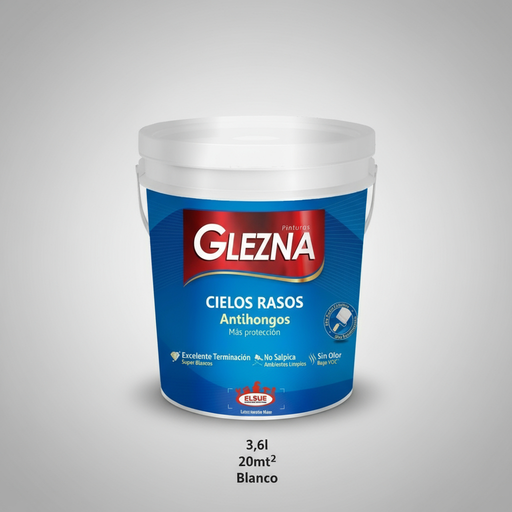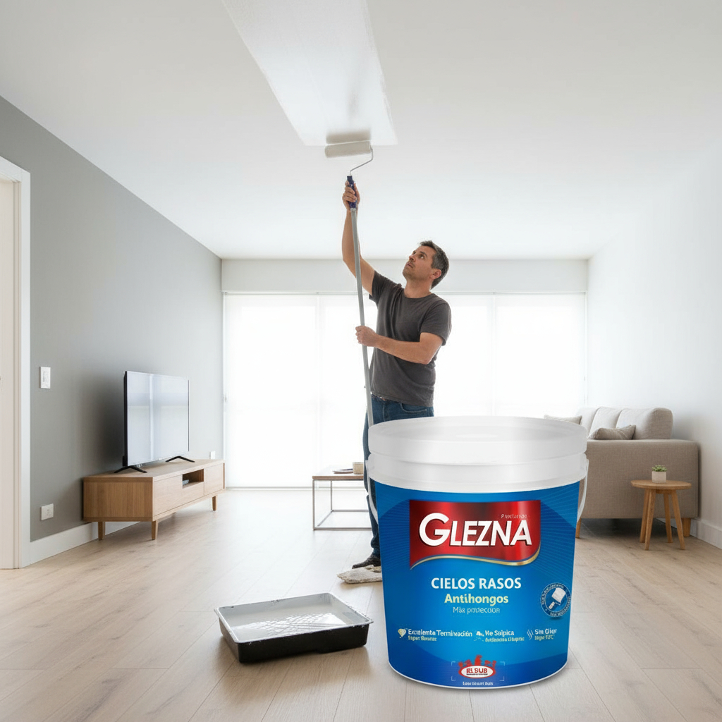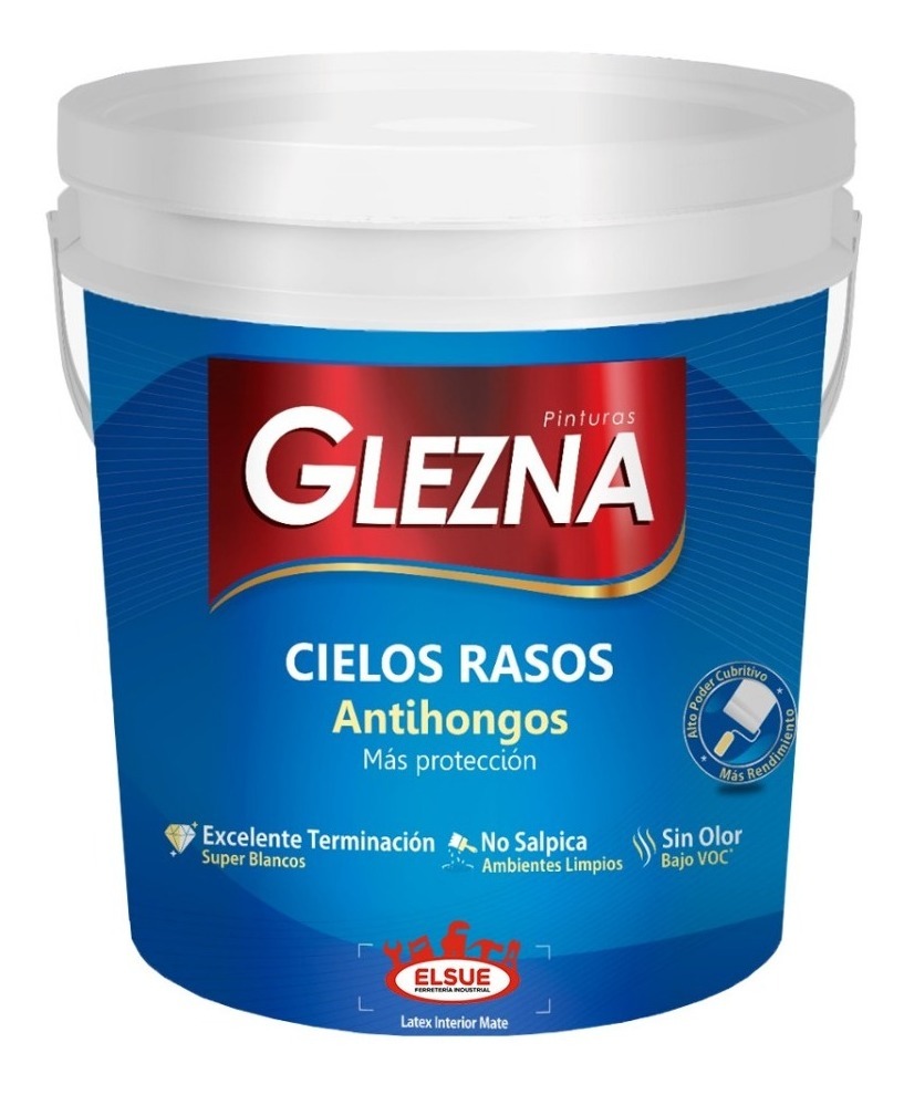 Pintura Cielos Rasos Antihongos, es una pintura mate para interiores, formulada especialmente para la protección de cielos rasos, no salpica y debido a su gran porosidad evita la condensación de la humedad por lo que es especialmente útil para techos, baños y cocinas. Tiene alto poder cubritivo, mas rendimiento, excelente terminación y es una pintura sin olor. Su composición es indicada para la protección de cielos rasos, enduido, ladrillo, yeso, paneles acústicos y hardbcard.