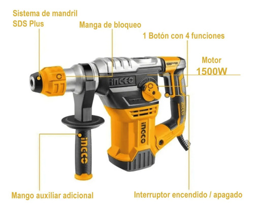 Rotomartillo Industrial 1500w 5,5j Sds Plus Ingco – 4 Fun