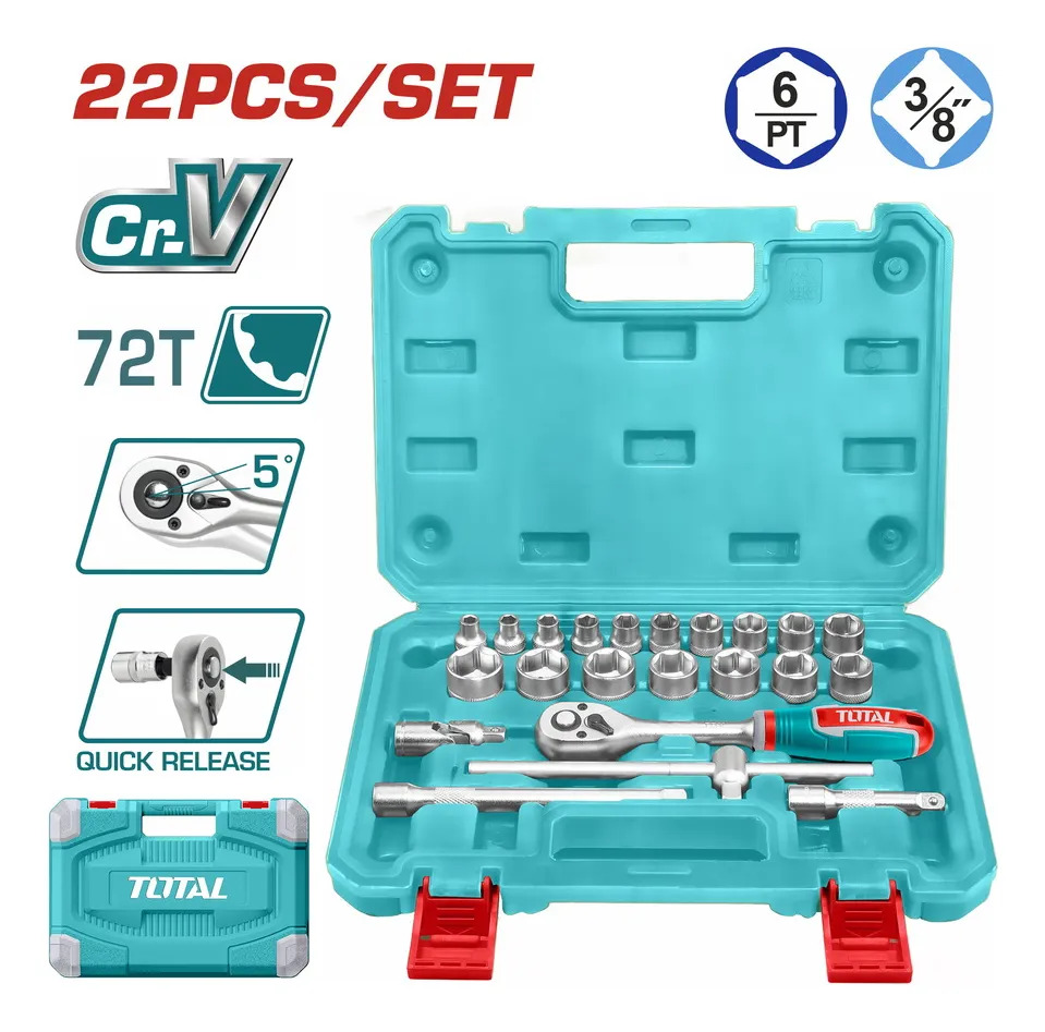 Set Juego 22 Dados Llave Crique Total 3/8» Maletín Plástico