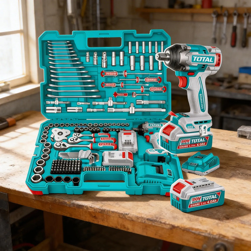 Juego de 172 herramientas con llave de impacto inalámbrica.