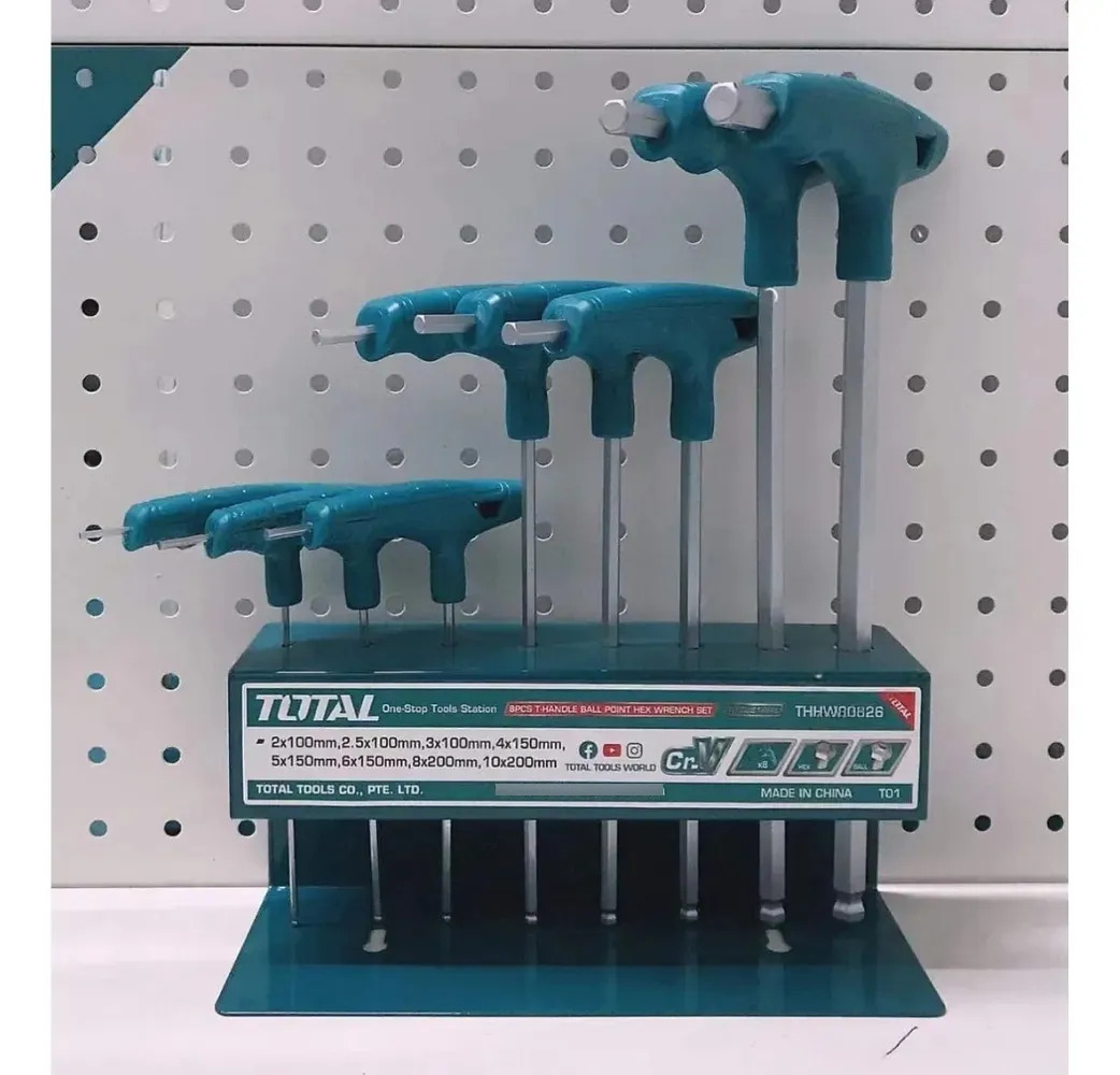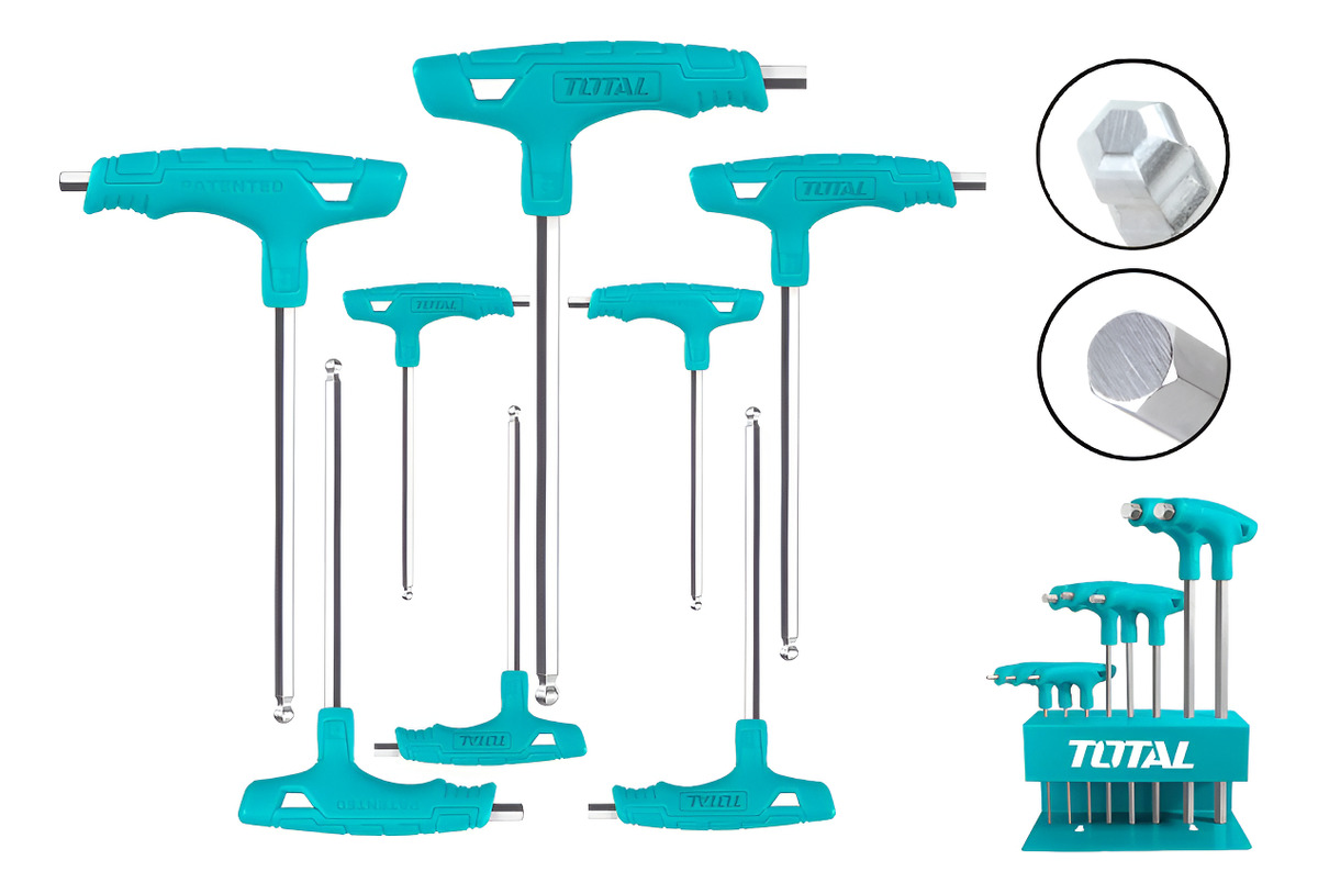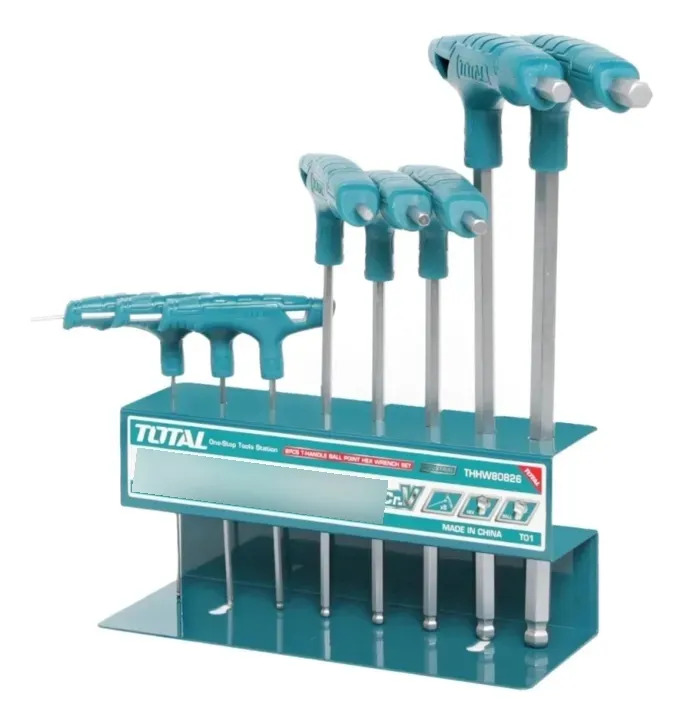 Total THHW80826 Juego de llaves Allen hexagonales con mango en T de 8 piezas con extremo de bola