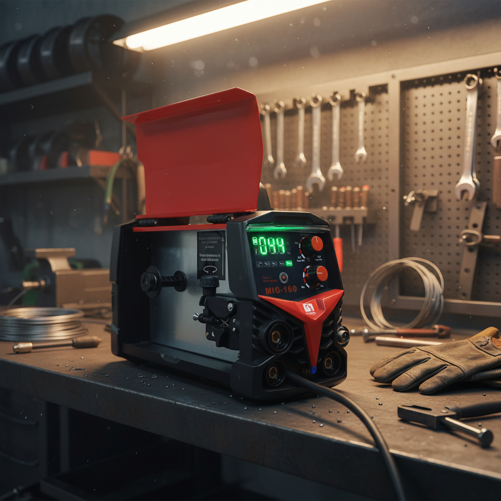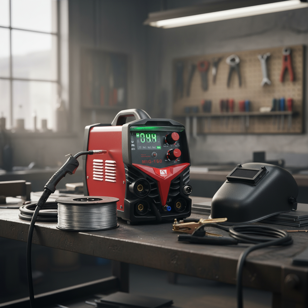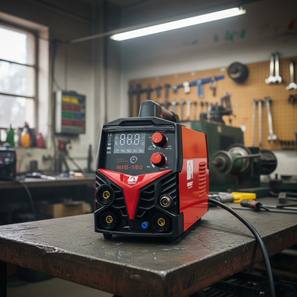 Accesorios: Torcha MIG 14AK con cable de 2 m (conector rápido), porta electrodo con cable de 2 m, pinza masa con cable de 1,5 m, alambre flux de 0,45 kg, alambre macizo de 1kg, máscara, cepillo