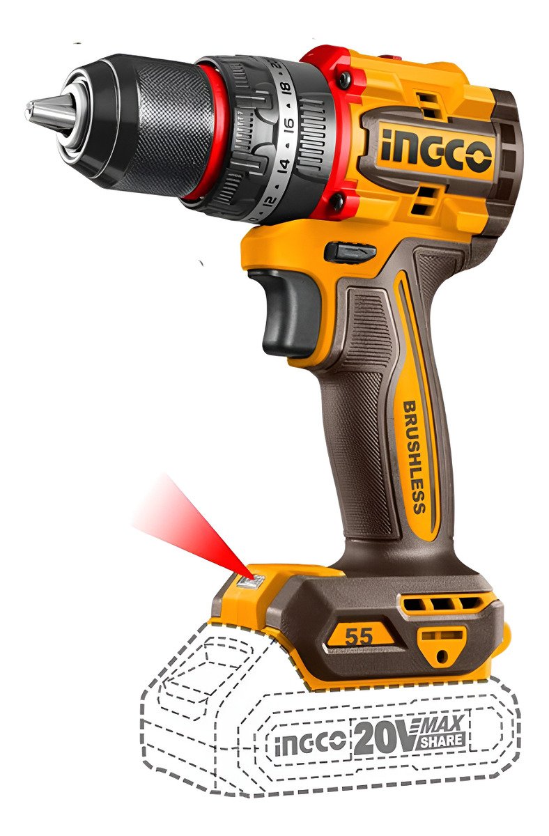 TALADRO ATORNILLADOR C/PERCUTOR A BATERIA 20V P20S BRUSHLESS 55NM CON ACCESORIOS, S/BAT Y S/CARG