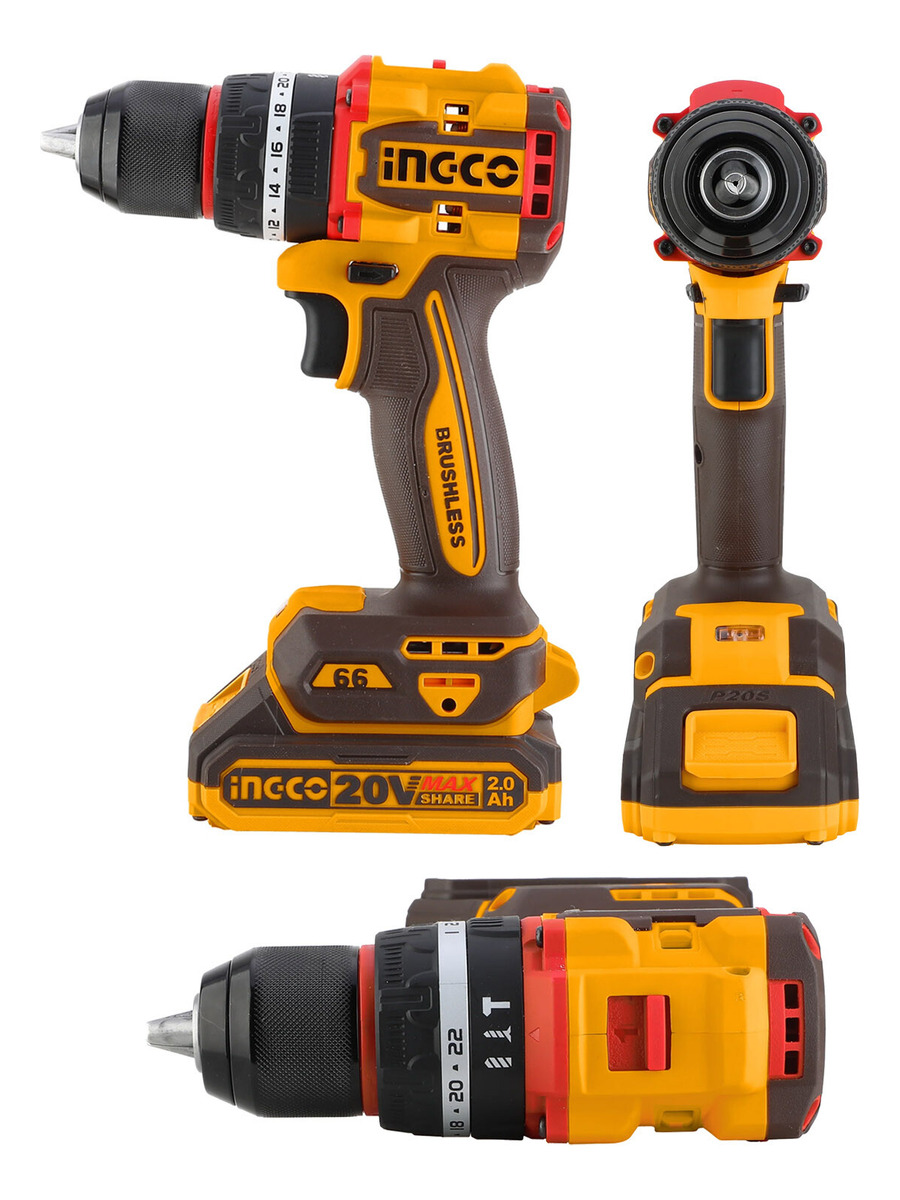 TALADRO ATORNILLADOR C/PERCUTOR A BATERIA 13MM COMPACT BRUSHLESS 20V P20S EN VALIJA C/2 BAT + 47 ACCESORIOS