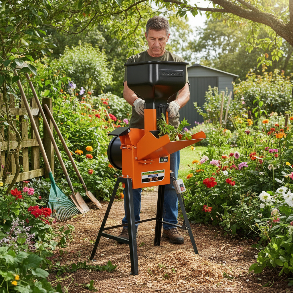 – Tiene ganchos para sujetar la bolsa a la salida inferior, proporcionando total aprovechamiento del material triturado.