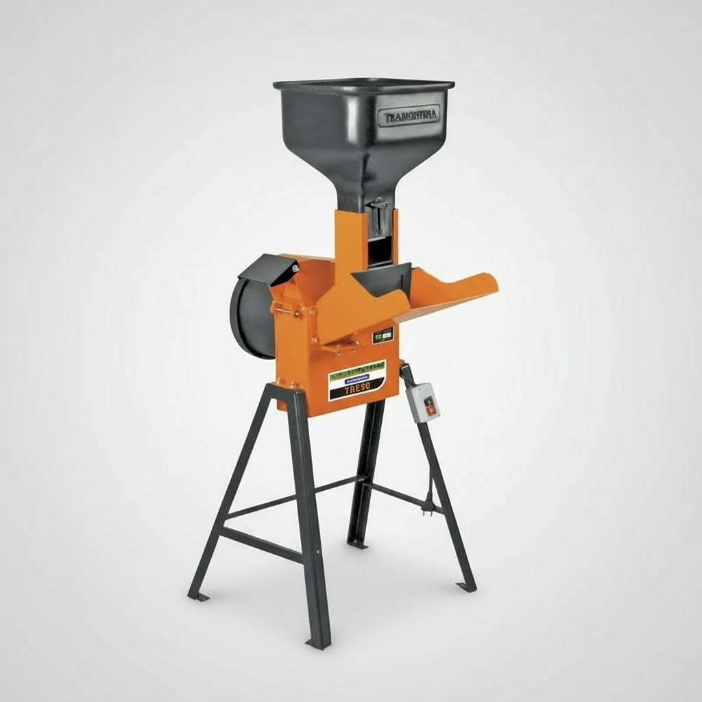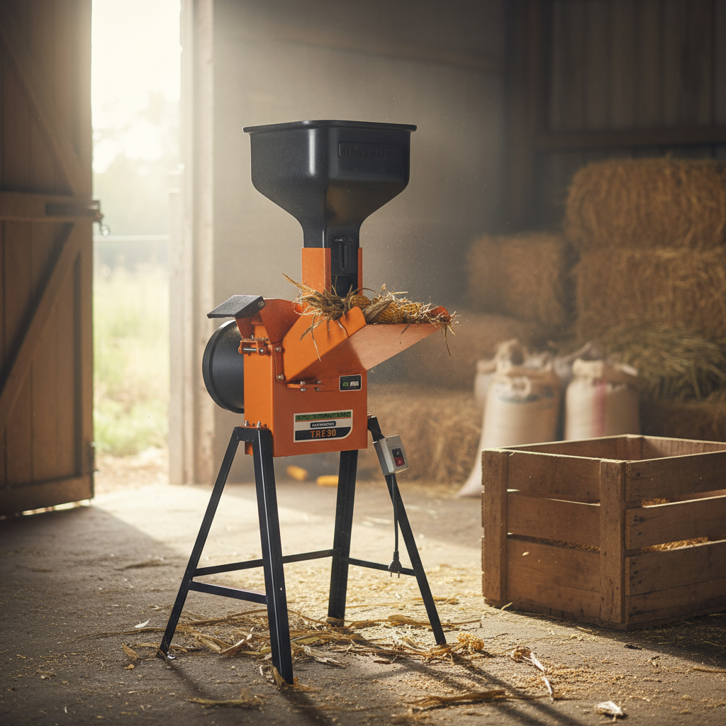 – Acompañado de cuatro zarandas: la zaranda de 3 mm (maíz quebrado fino) tiene una producción media de 130-260 kg/h, la zaranda de 5 mm (maíz quebrado grueso) tiene una producción media de 250-550 kg/h, la zaranda de 10 mm (paja de maíz triturada) tiene una producción media de 130-300 kg/h y el fondo liso (forraje) tiene una producción media de 550-1050 kg/h.